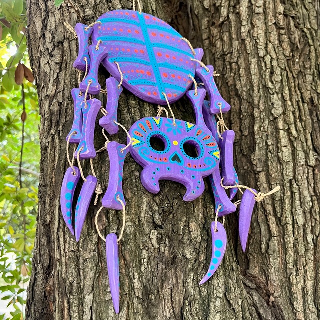 目を惹く華やかなデザインのオーナメント かわいいドクロの顔をしたスパイダー! ぶらぶらとした手足がユニークです◎ サイズ:(W) 約16cm × (D) 約1cm × (H) 約47.5cm(フックヒモ部分含む)