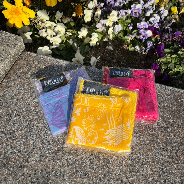 バリ島在住デザイナーによるブランドKYKULLO製のタオル 伝統的な技法で染められたバティックサロンとタオルが組み合わさったユニークなアイテム 目を惹くデザインで使い心地も抜群です◎ 素材: 表地:レーヨン100% タオル地:コットン92%、ポリエステル8% サイズ:約29.5cm × 29.5cm