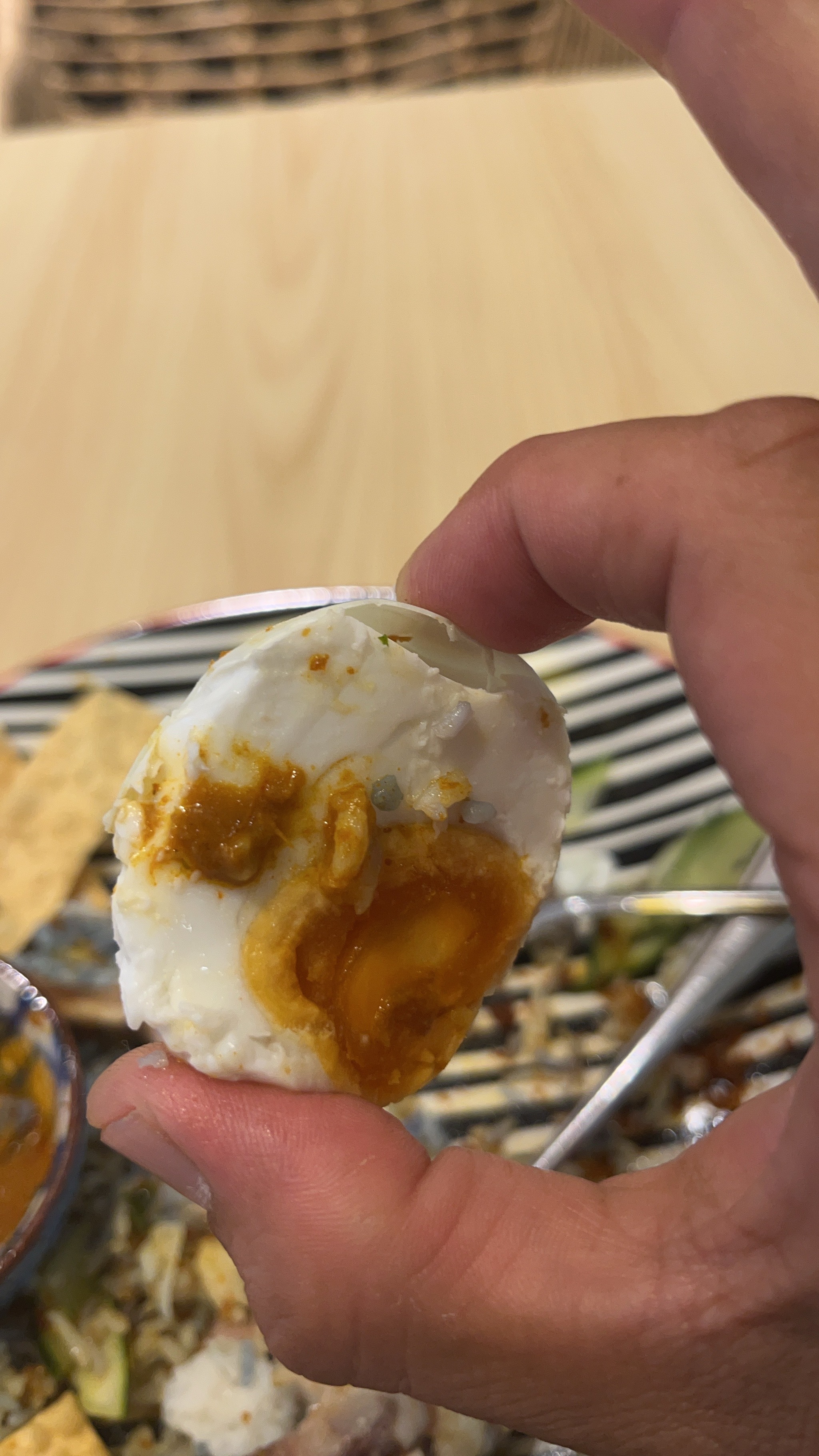 ゆで卵は、まさかの“殻つき真っ二つカット”で登場。