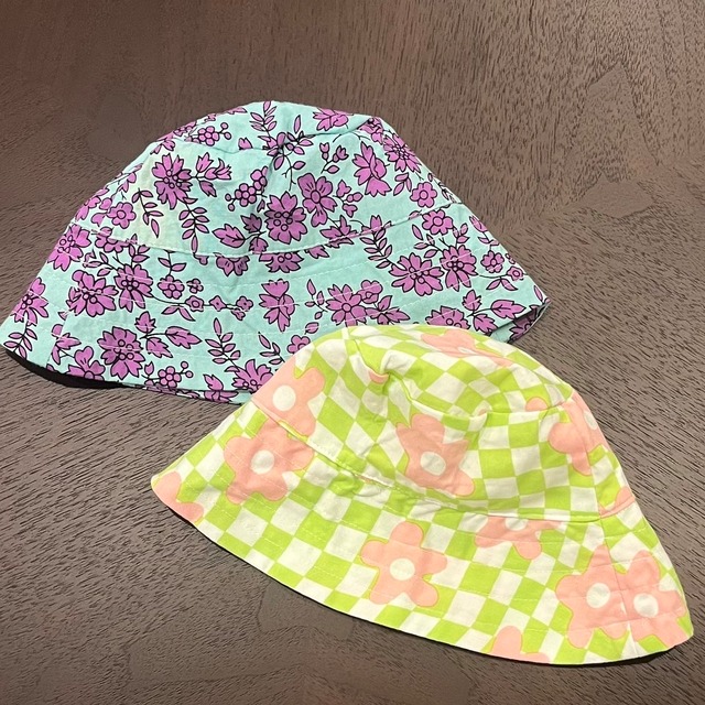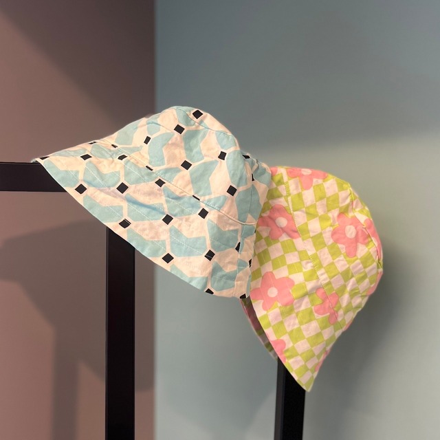 子ども用サイズでかわいらしいデザインのバケットハットMサイズ 親子でお揃いで着用するのもおすすめです◎ 日差しから守るだけでなく、おしゃれアイテムとしても映えるデザインです♪ サイズ:(頭周り) 約49cm × (ツバ) 約8.1cm × (高さ) 約6.6cm 素材:コットン100%