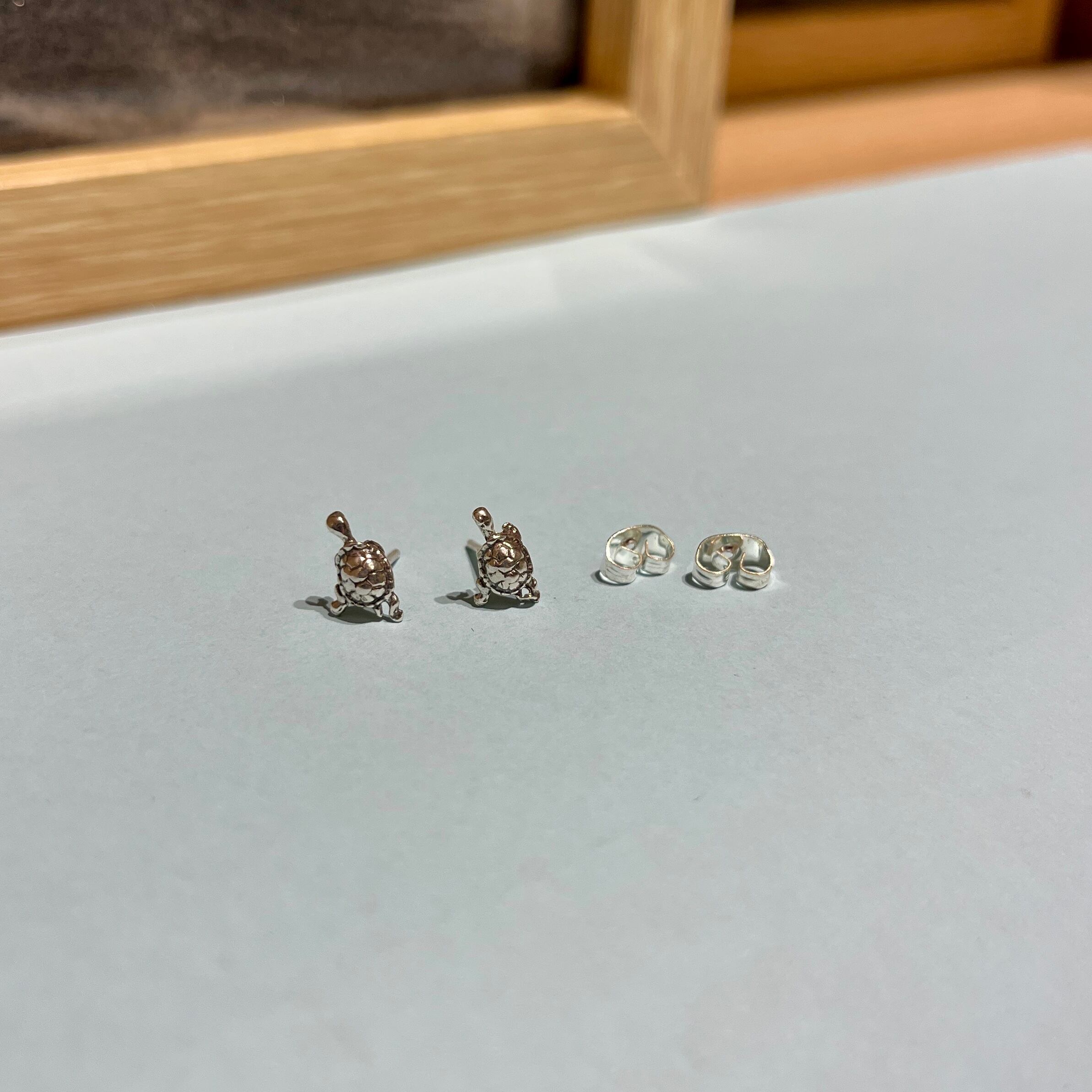 小さなカメがかわいい精巧なデザインのシルバーピアス