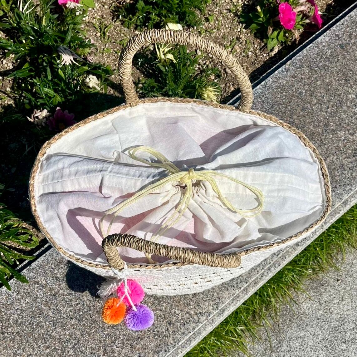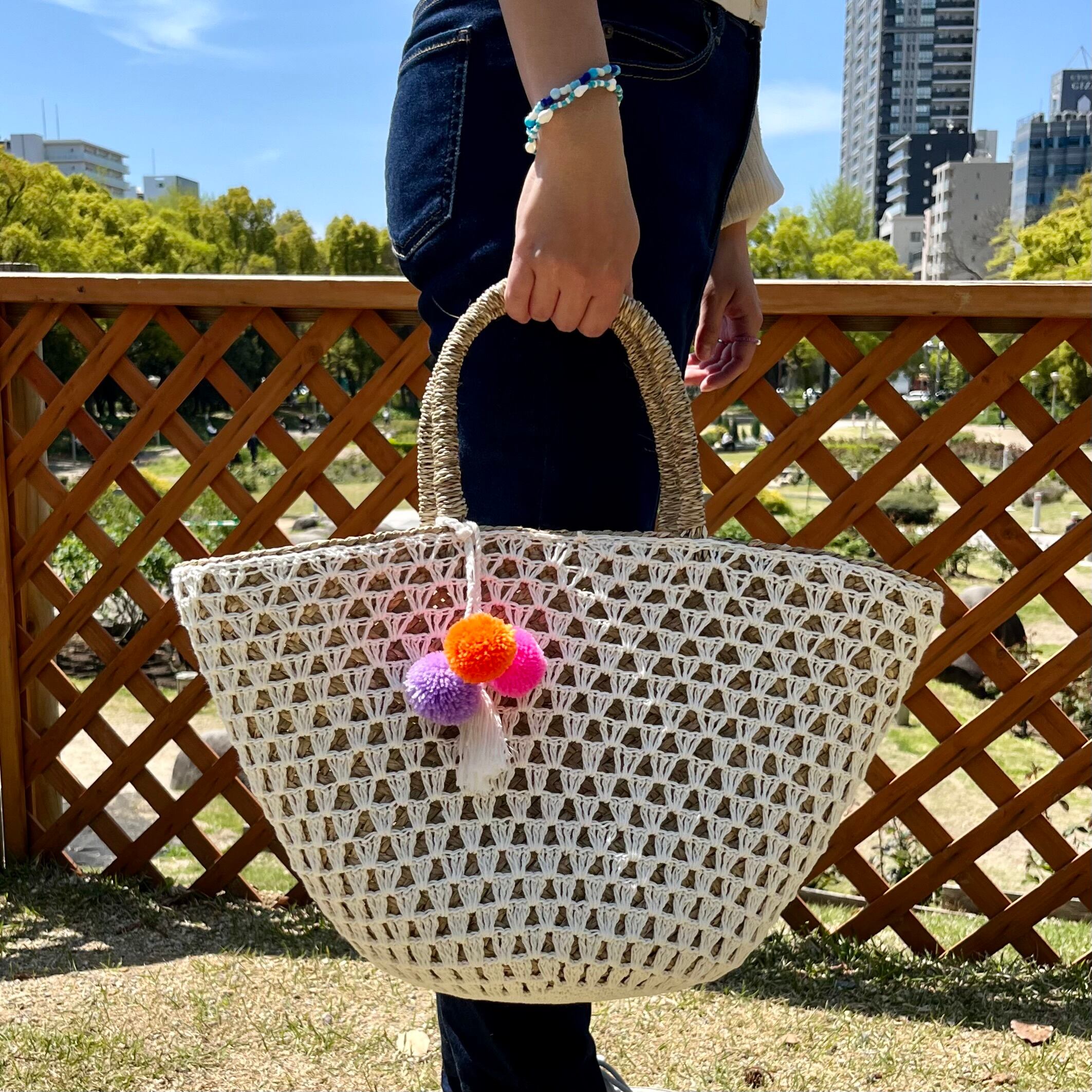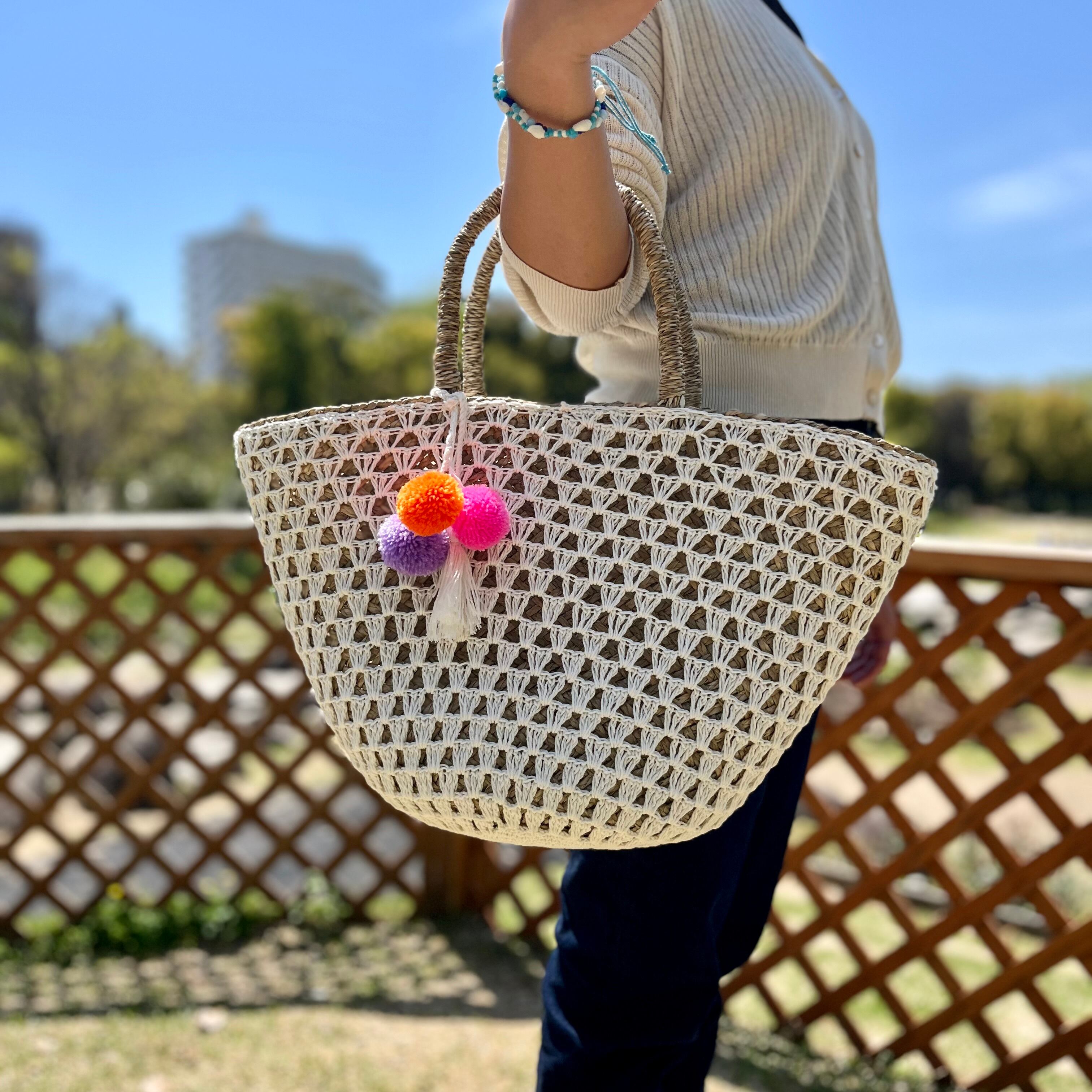 チャーム付き編みカゴバッグ☆White