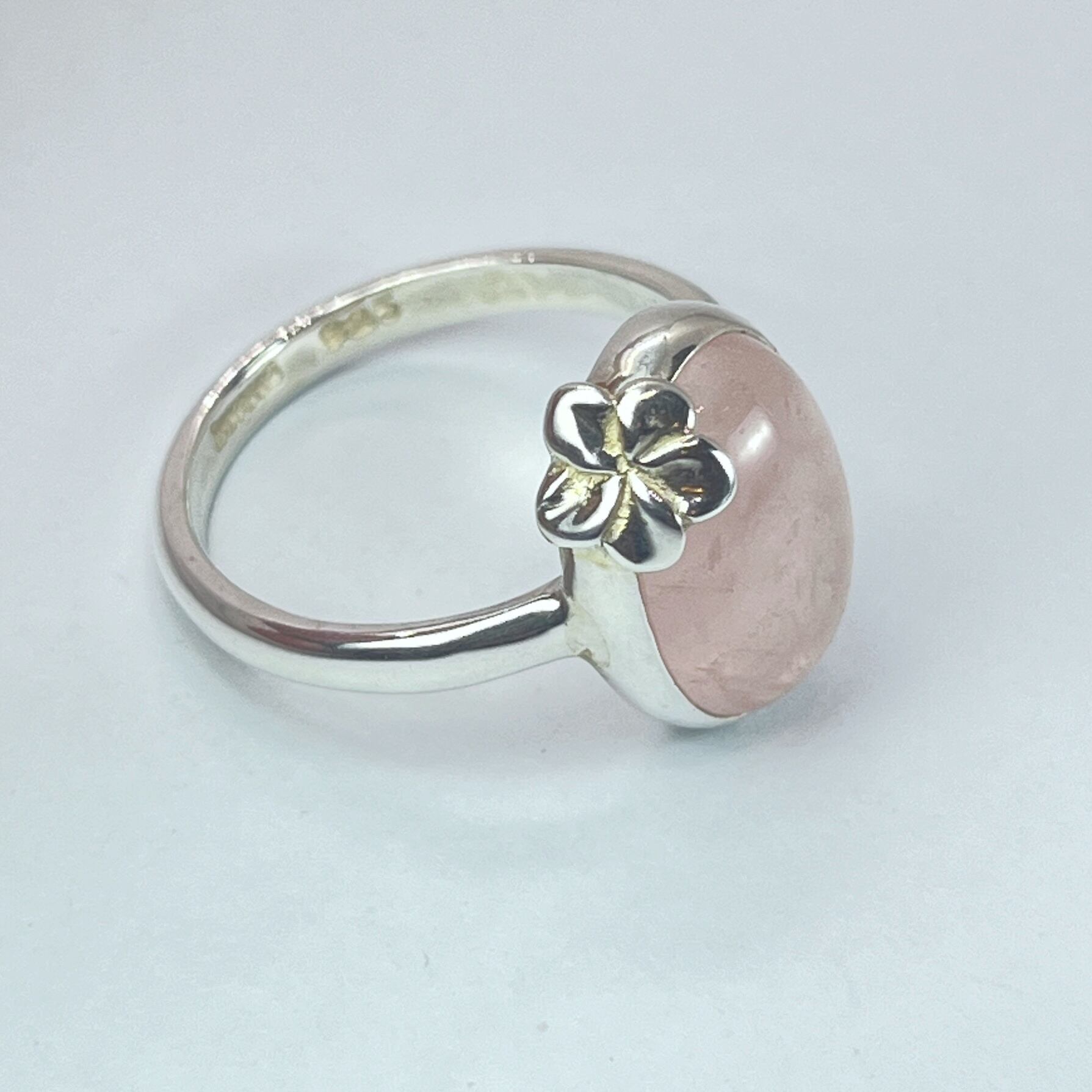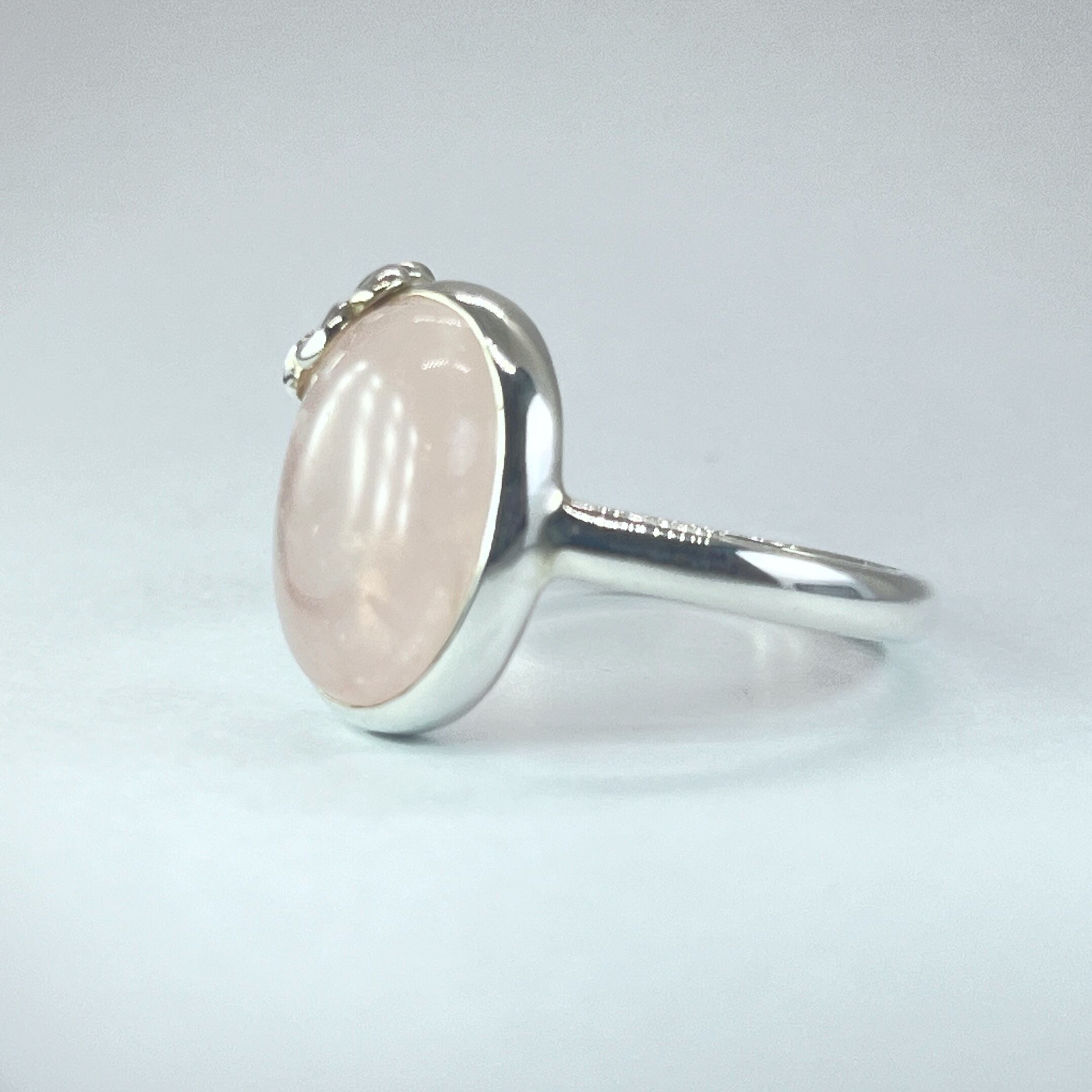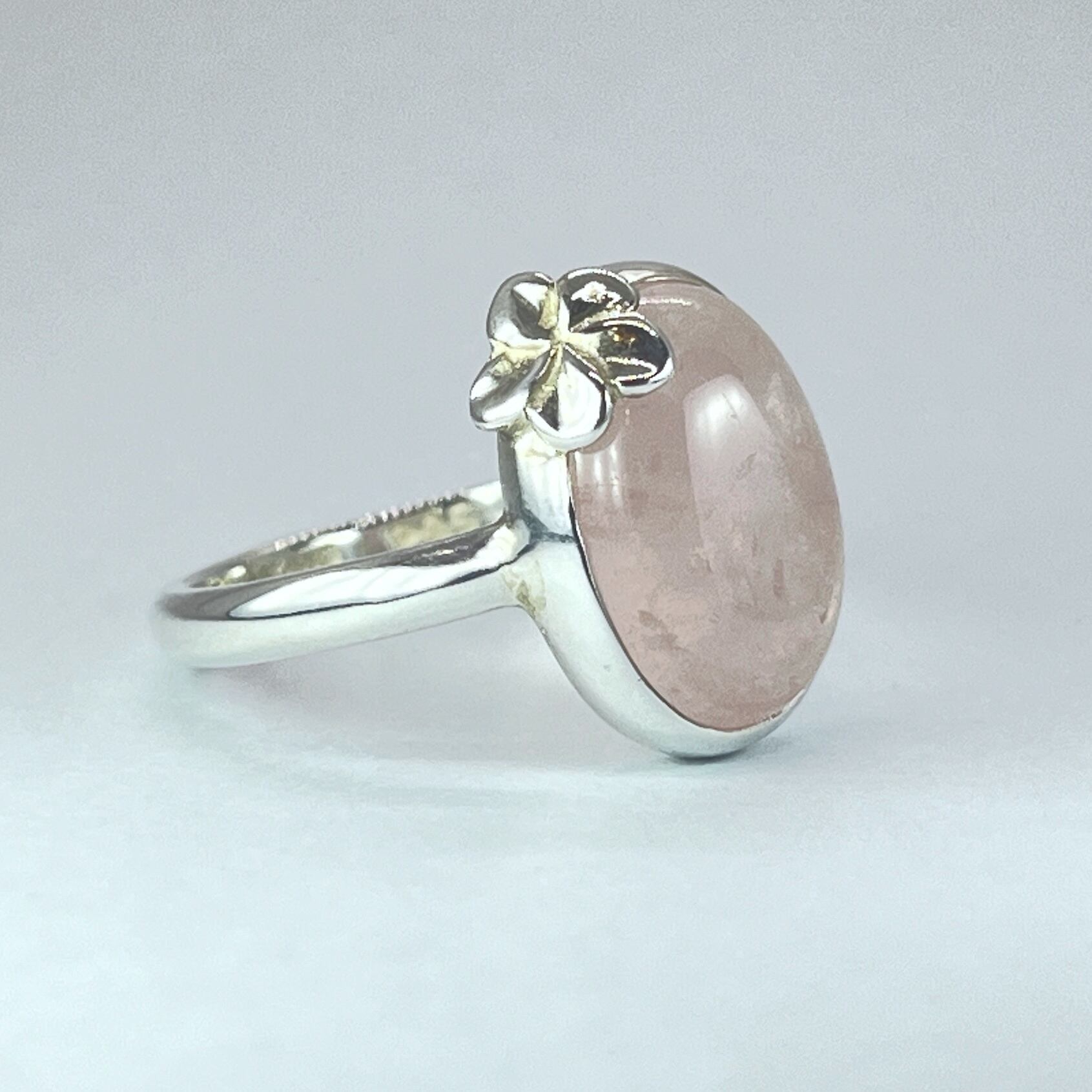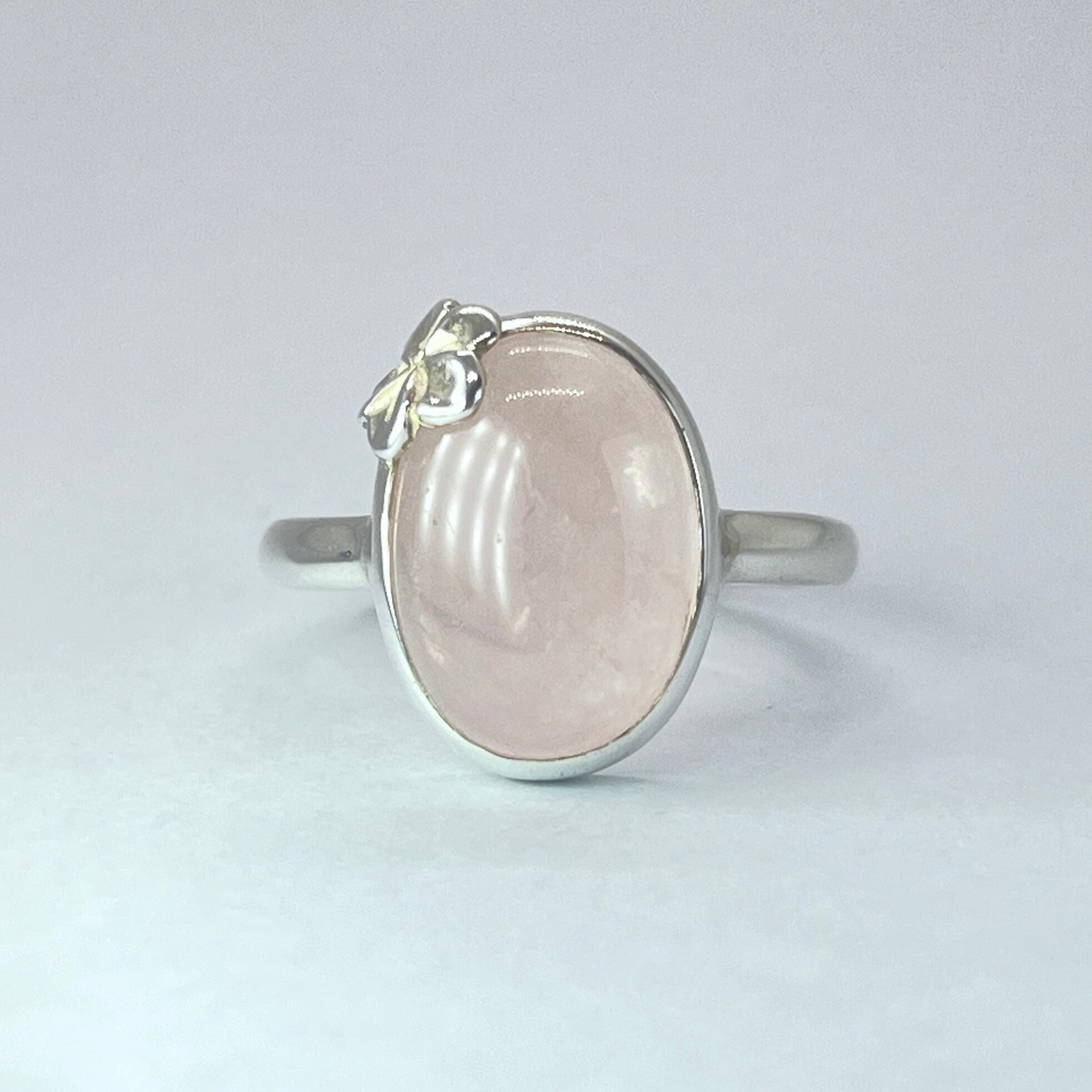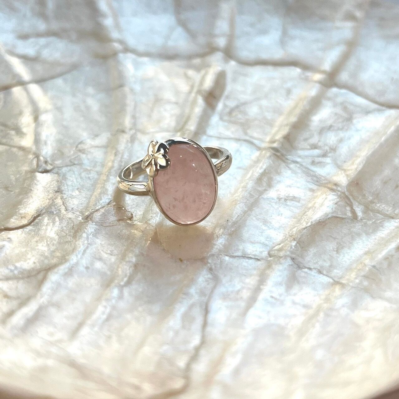 薄ピンク色の天然石が指元で華やかに輝きます!