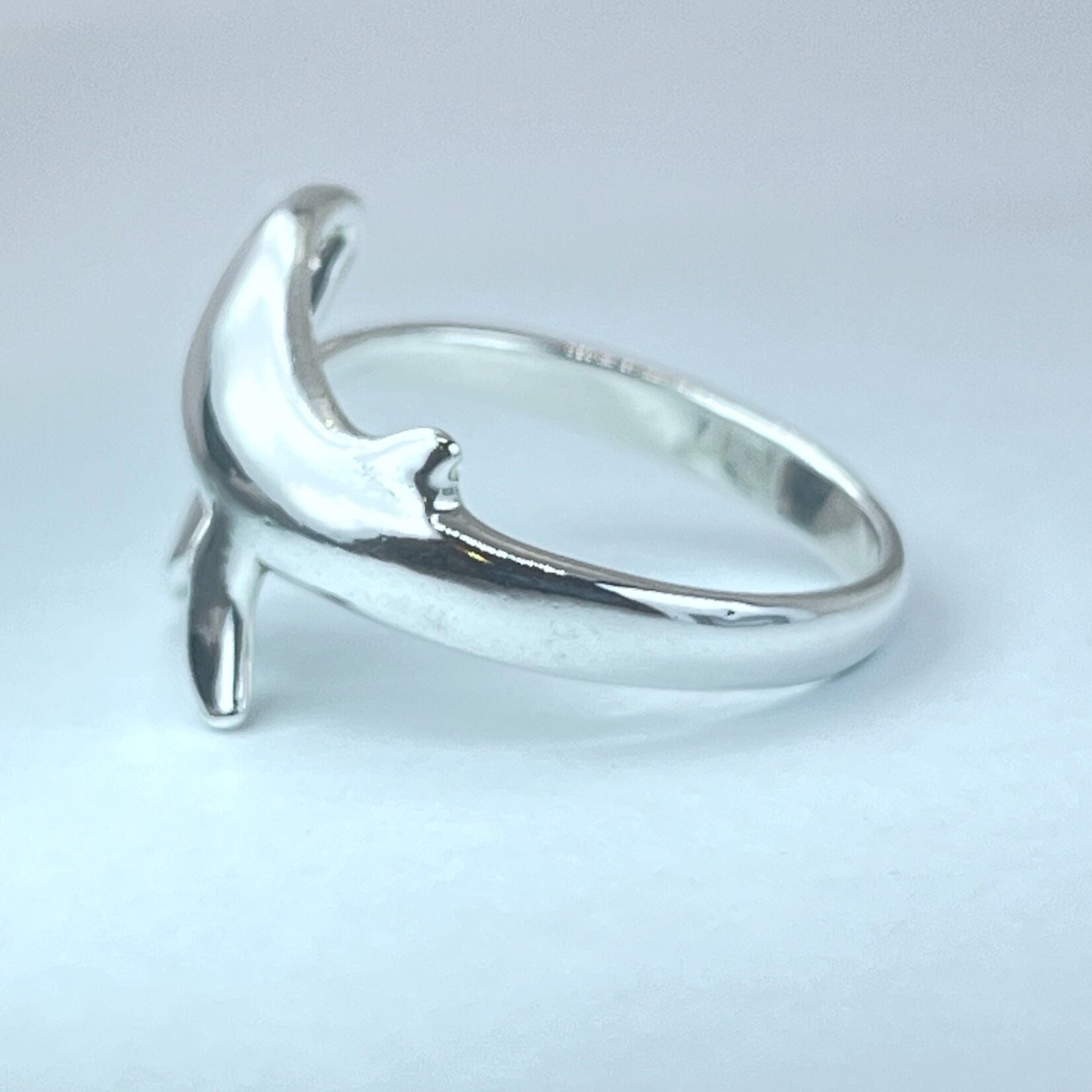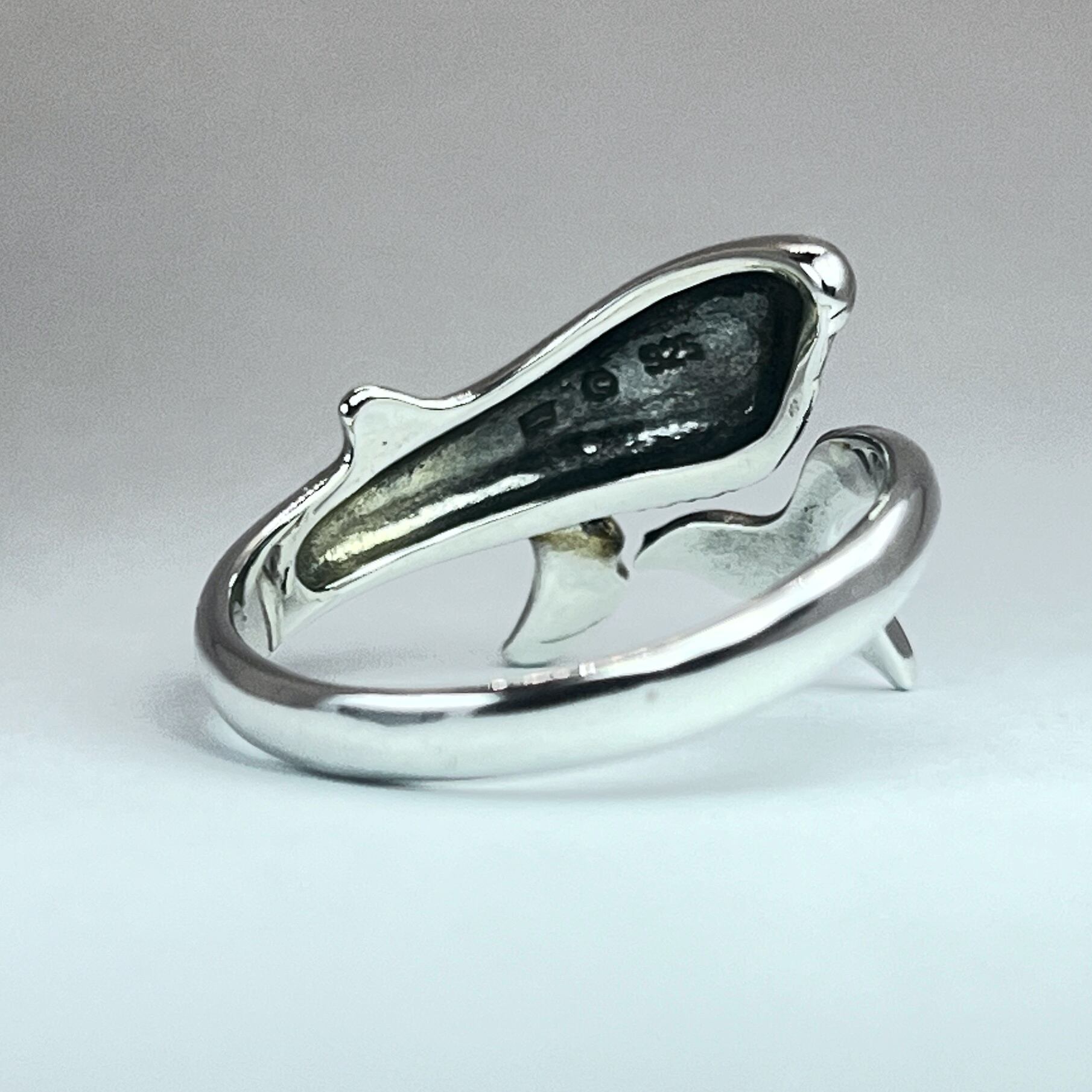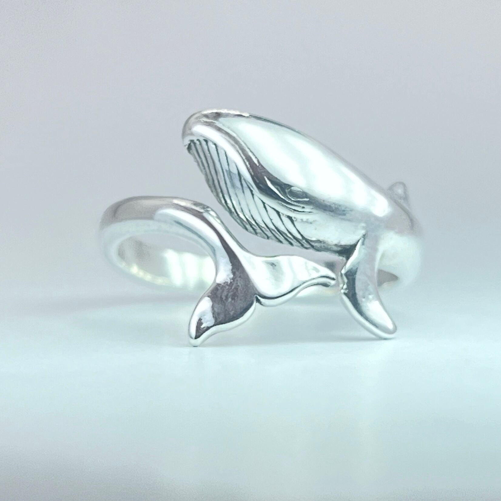 海で雄大に泳ぐクジラがデザインされたシルバーリング