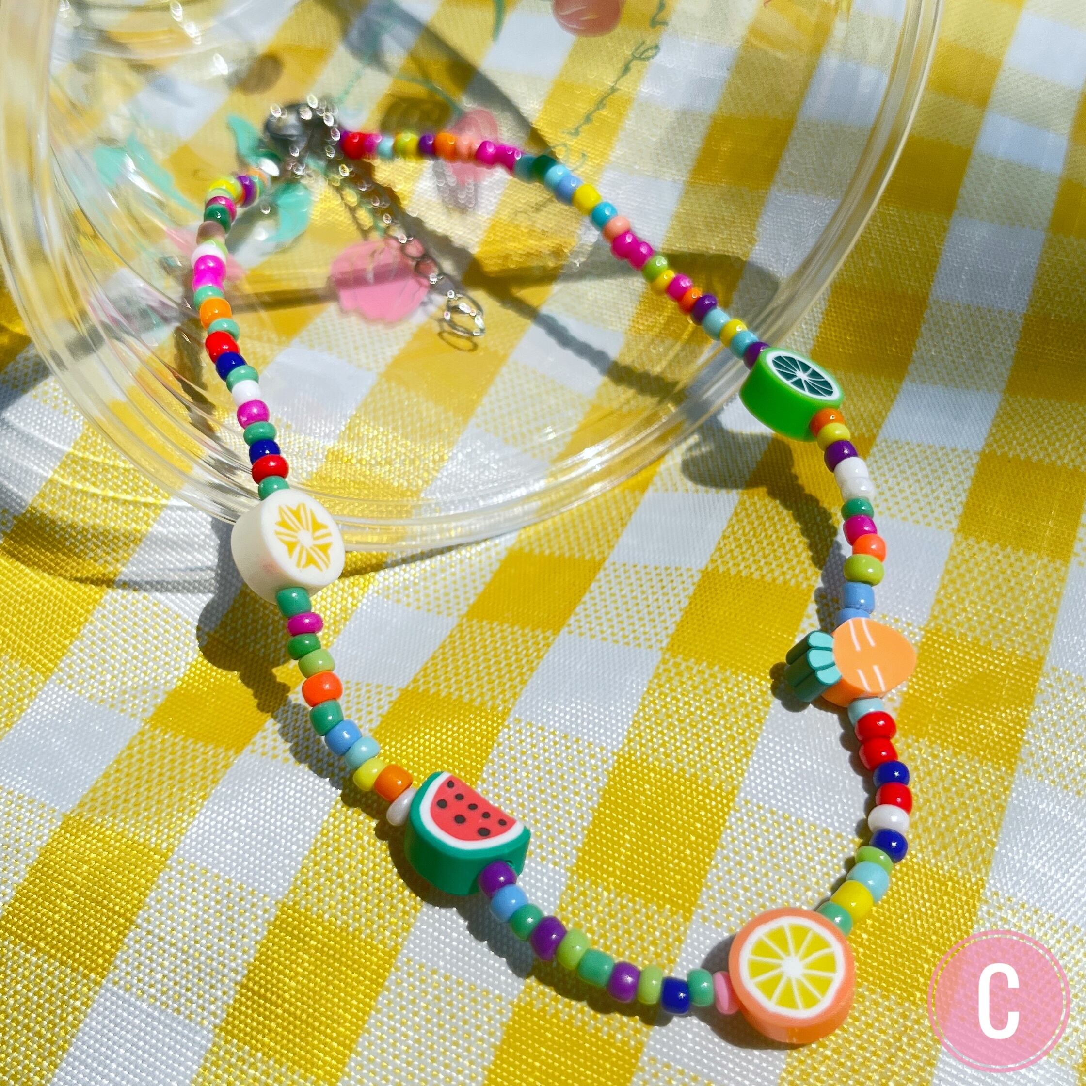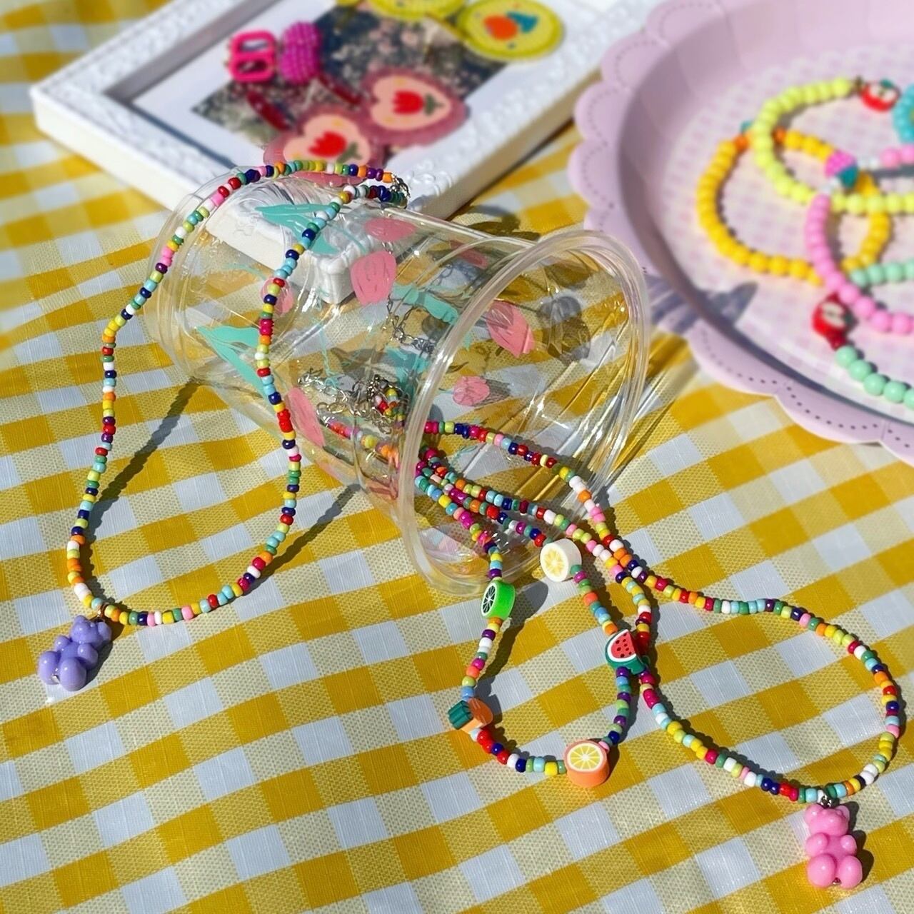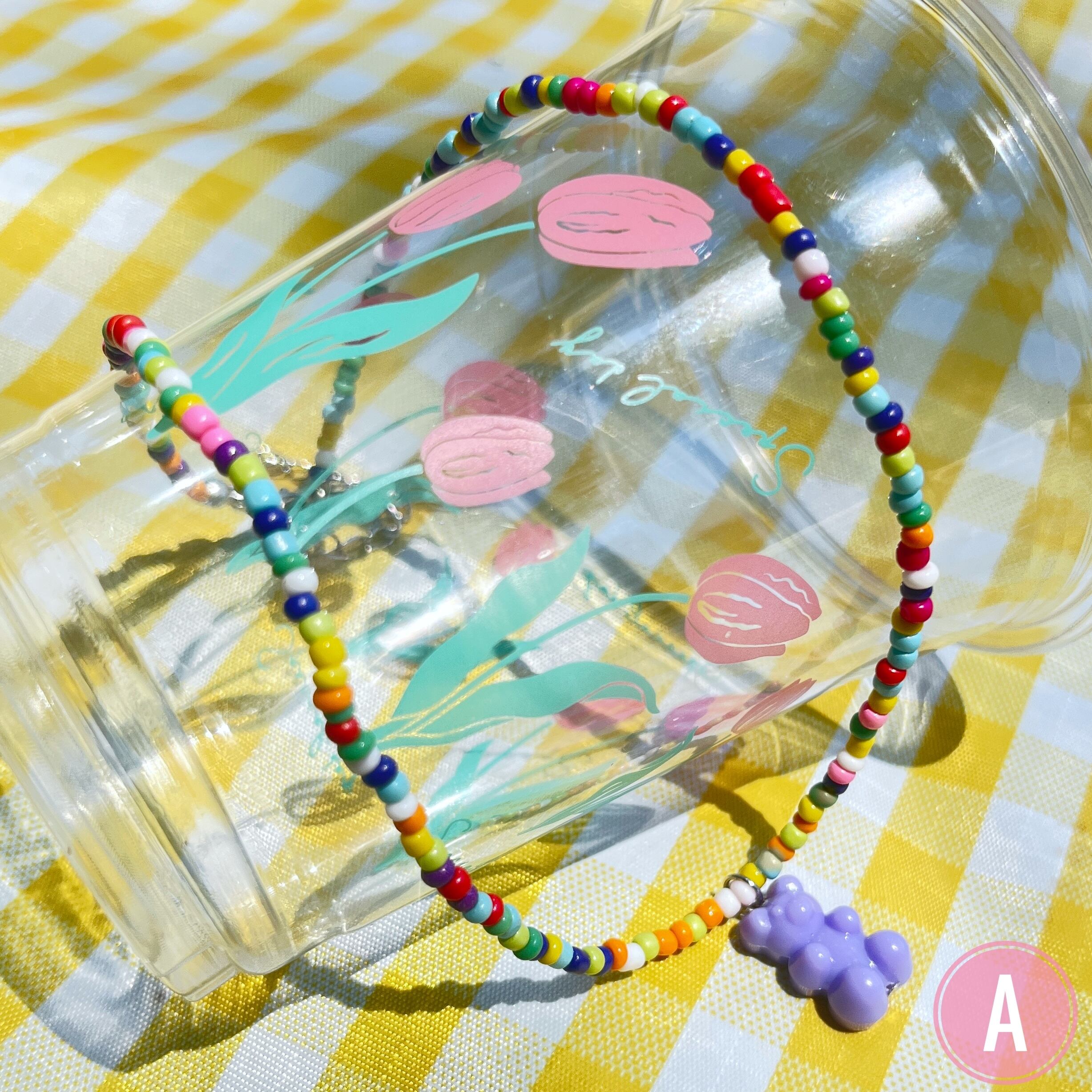 チャーム付き☆rainbowビーズネックレス ( 選べる3パターン )