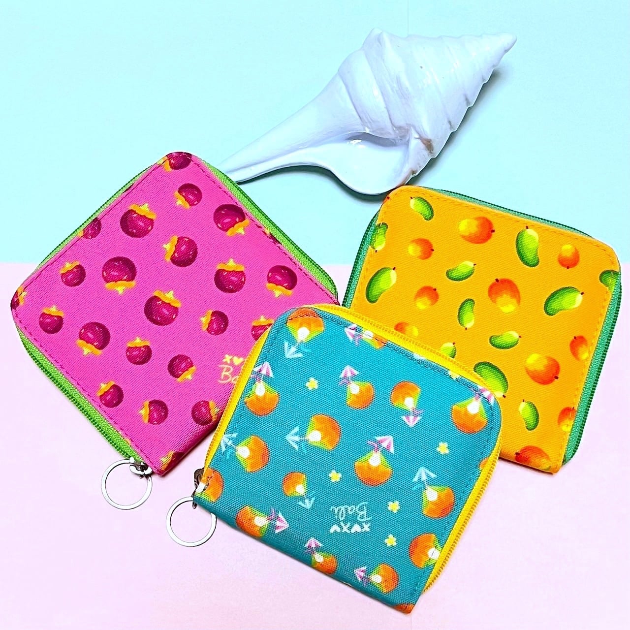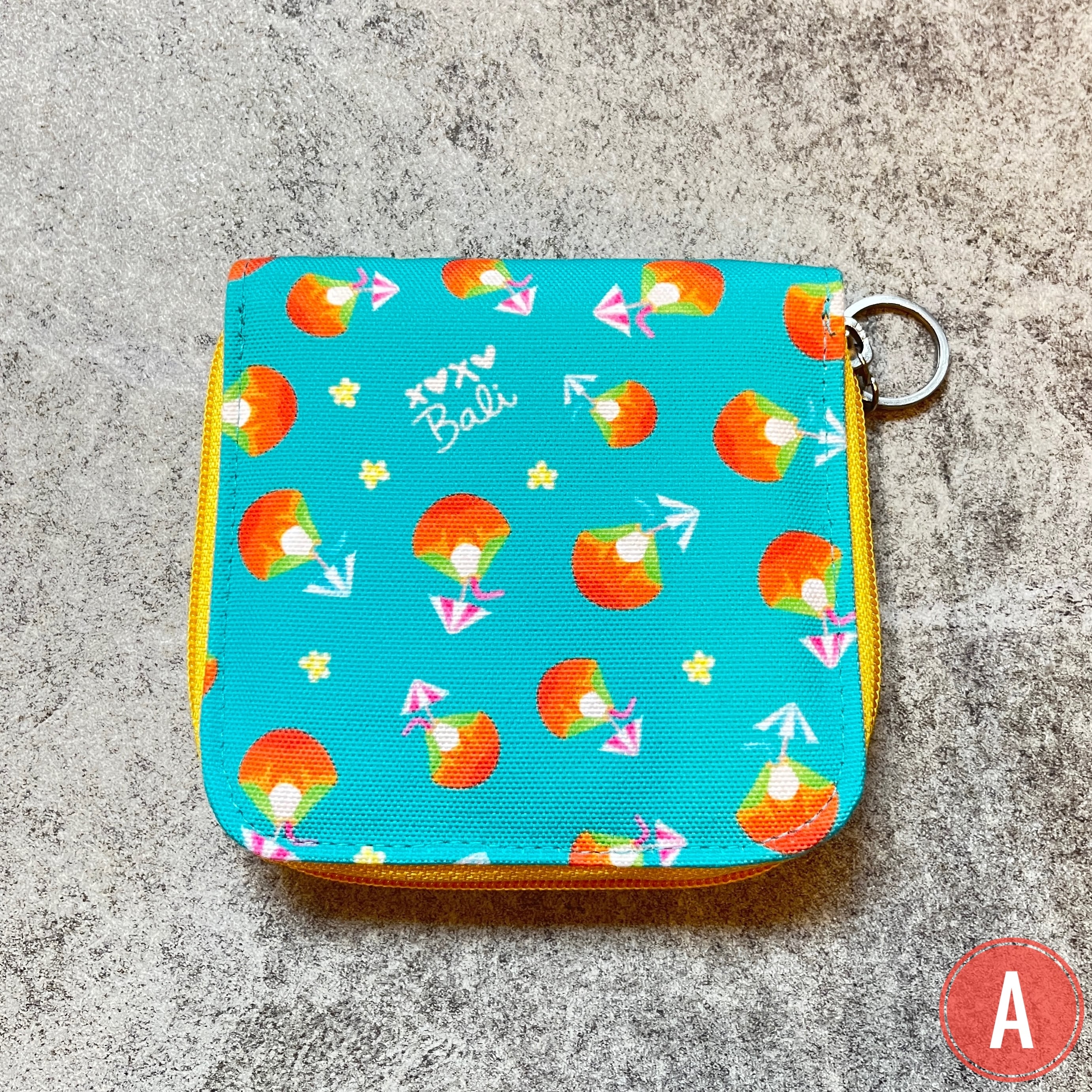 カラフルな南国のフルーツ柄がポップな二つ折り財布!