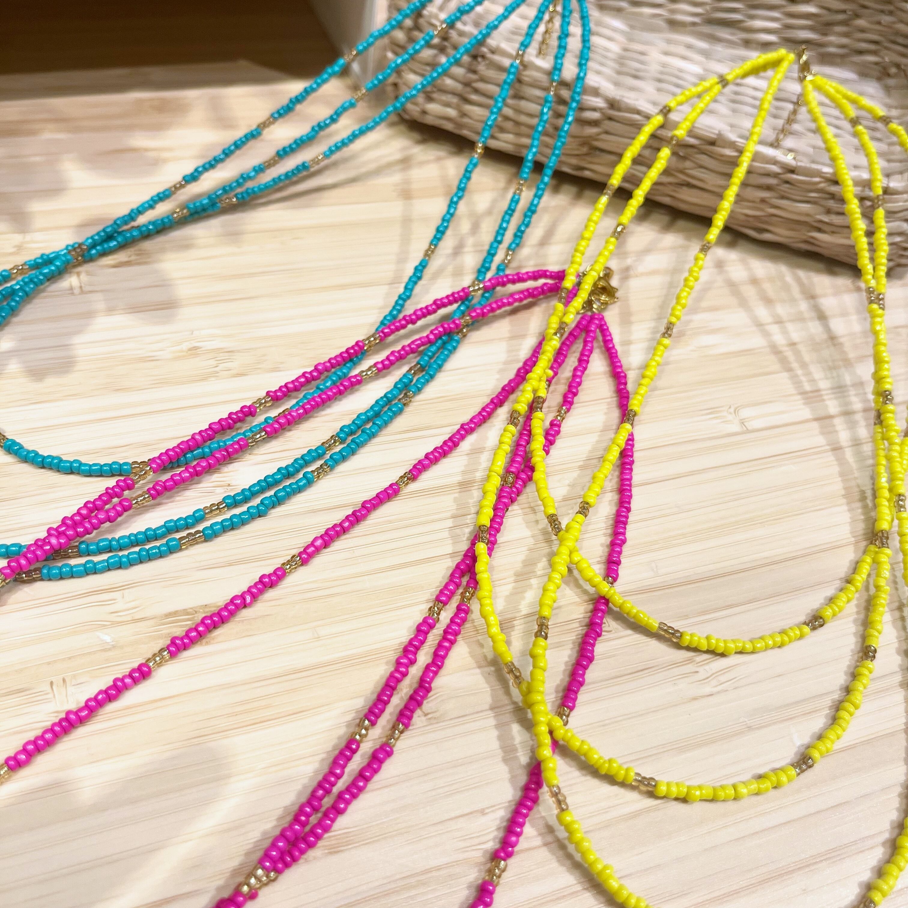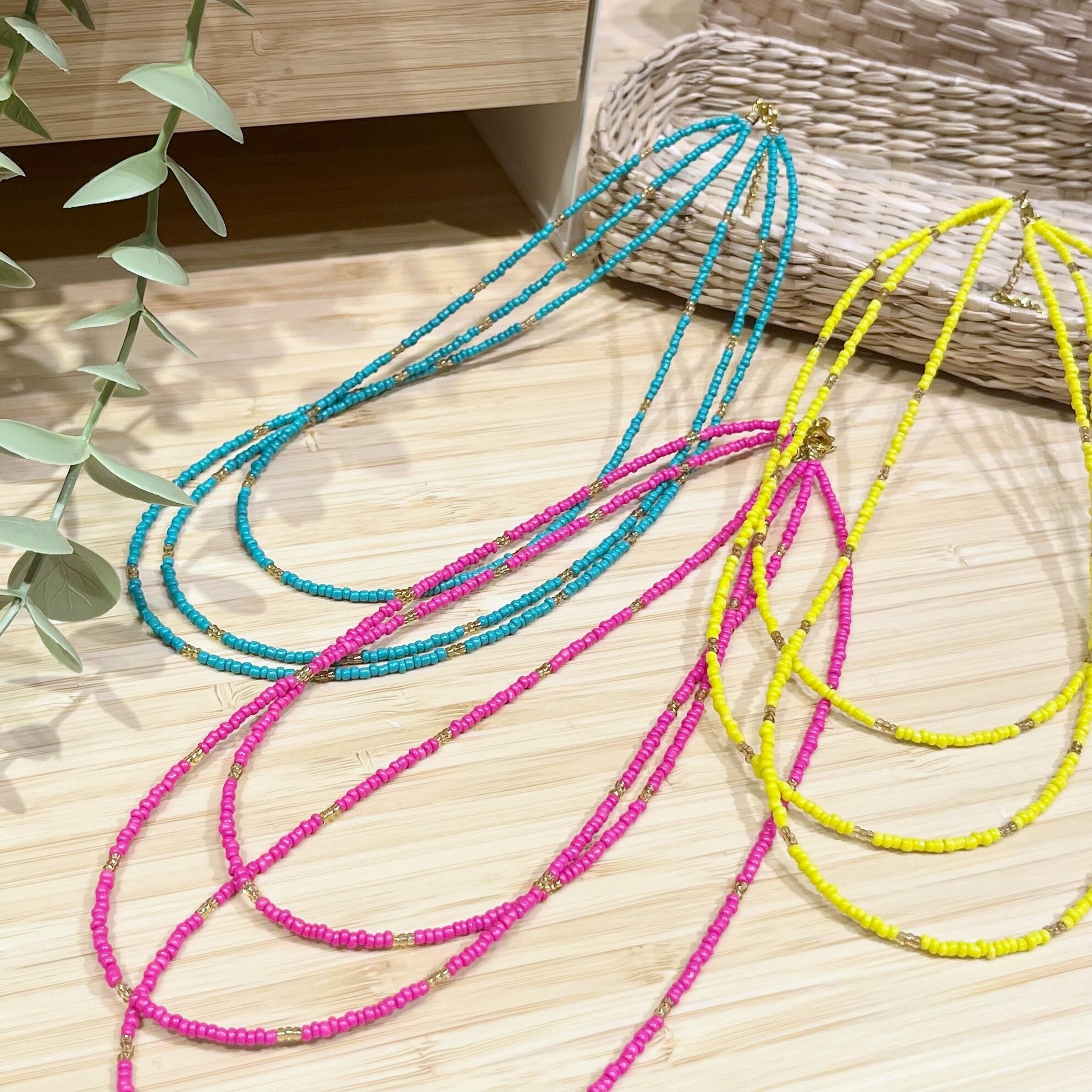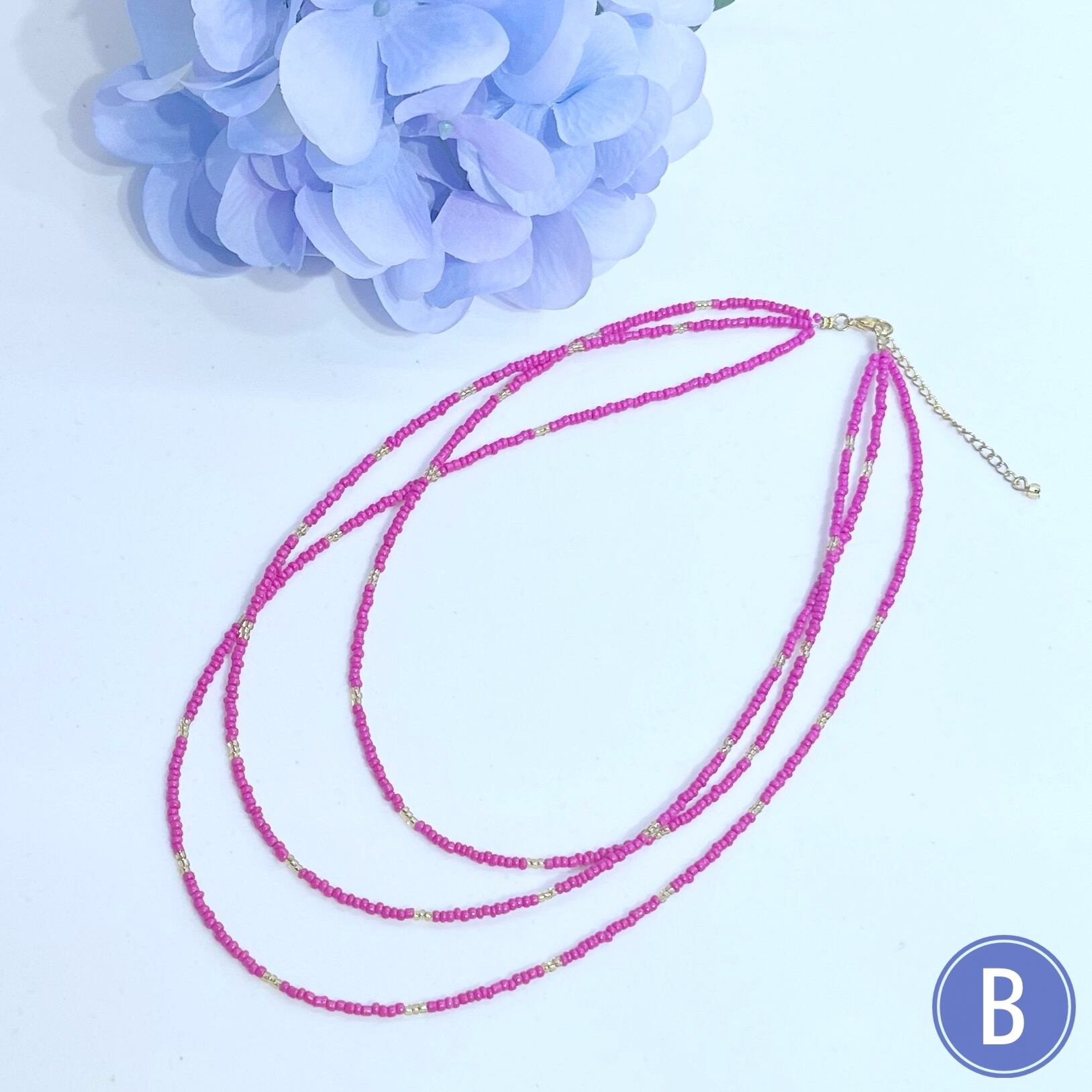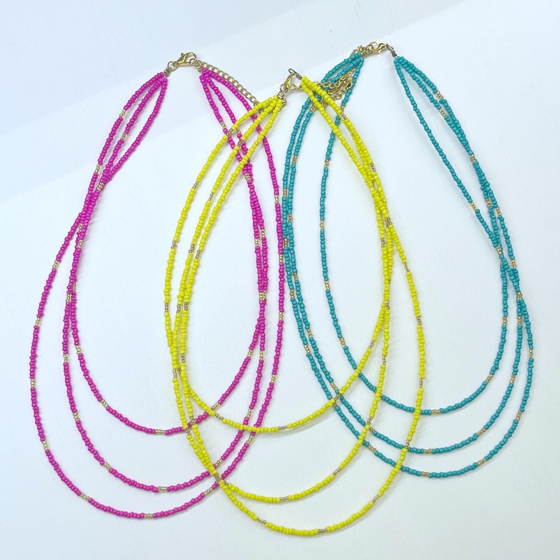 3連ビーズネックレス☆ビビットカラー( 選べる3パターン )