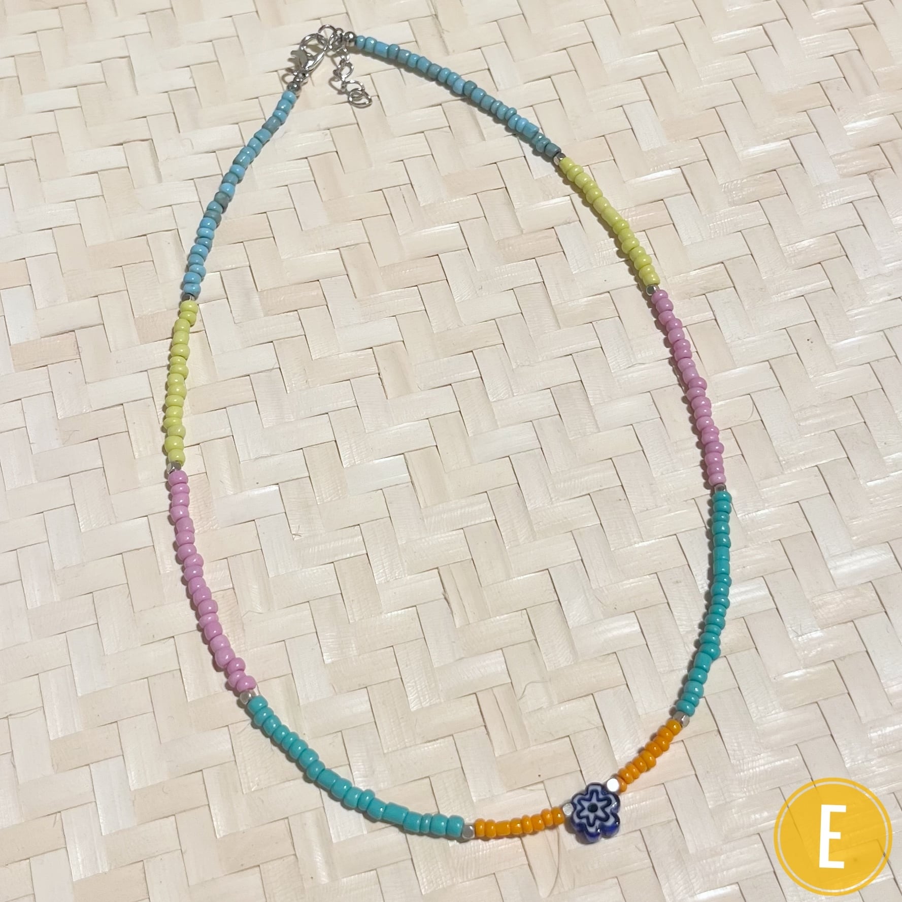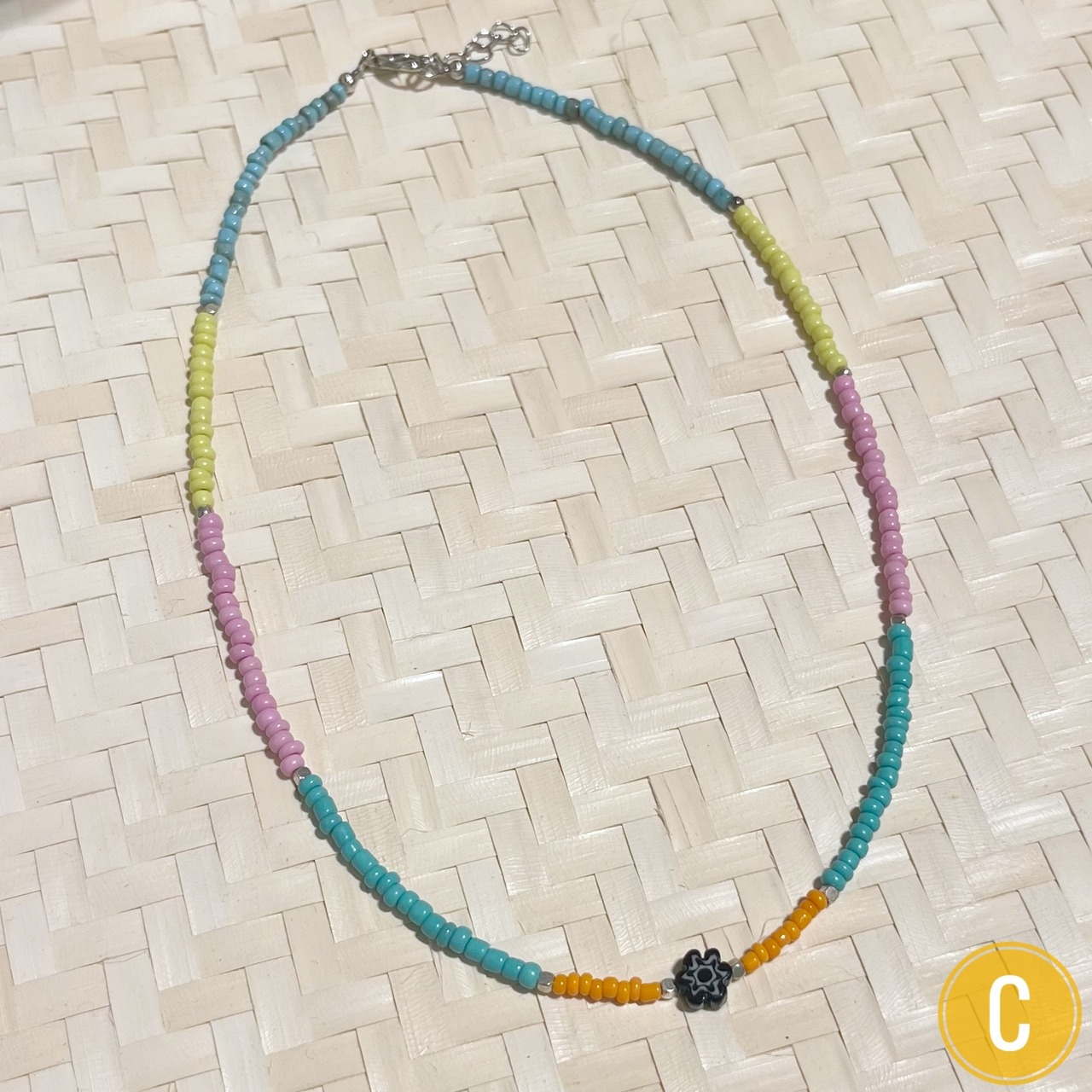 ワンポイントのお花がキュートなビーズネックレス
