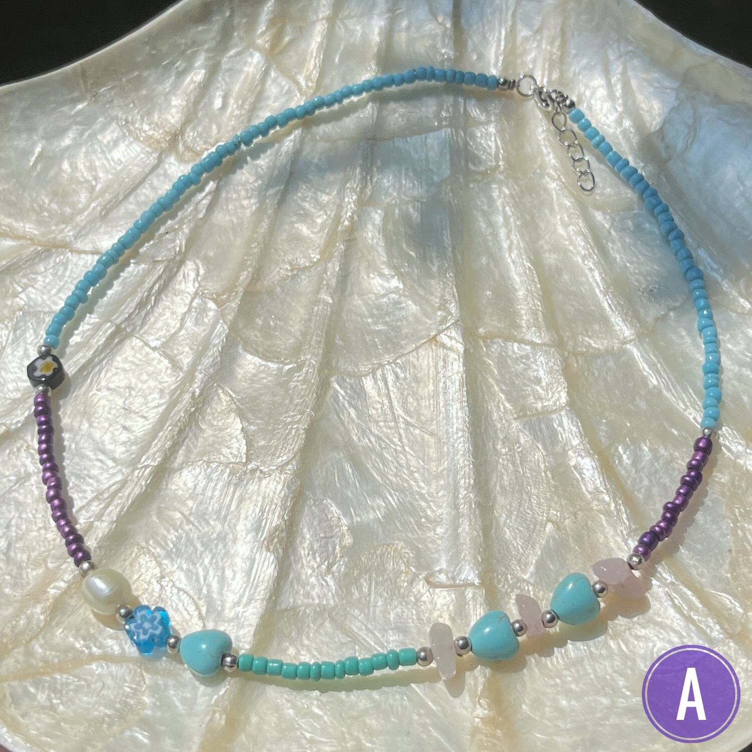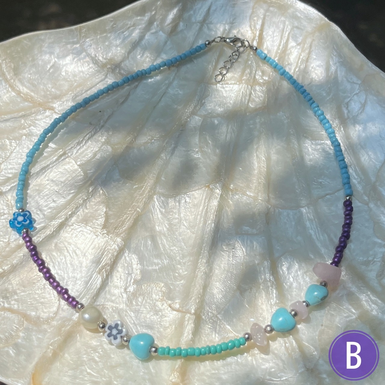 上品なパールに、様々な形の天然石が組み合わさったビーズネックレス