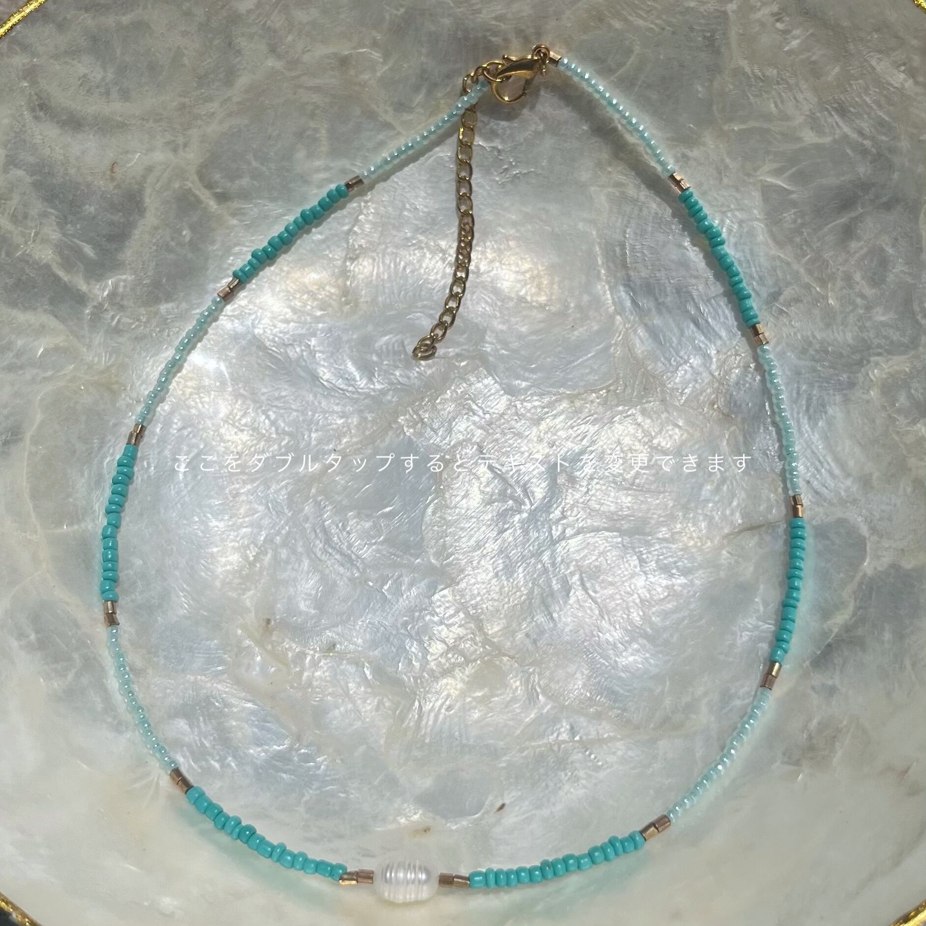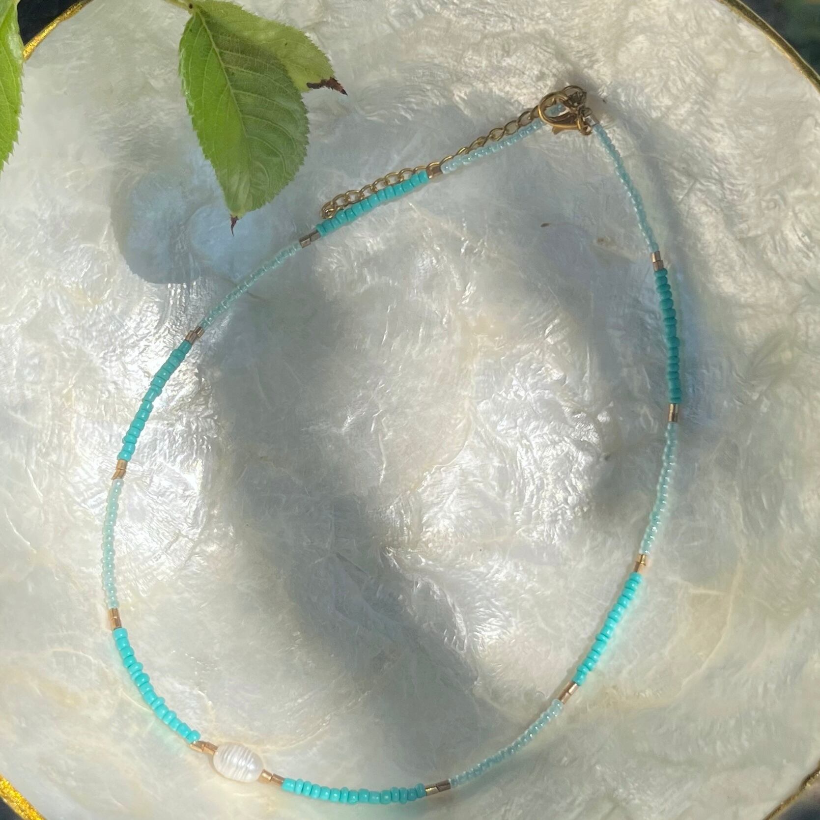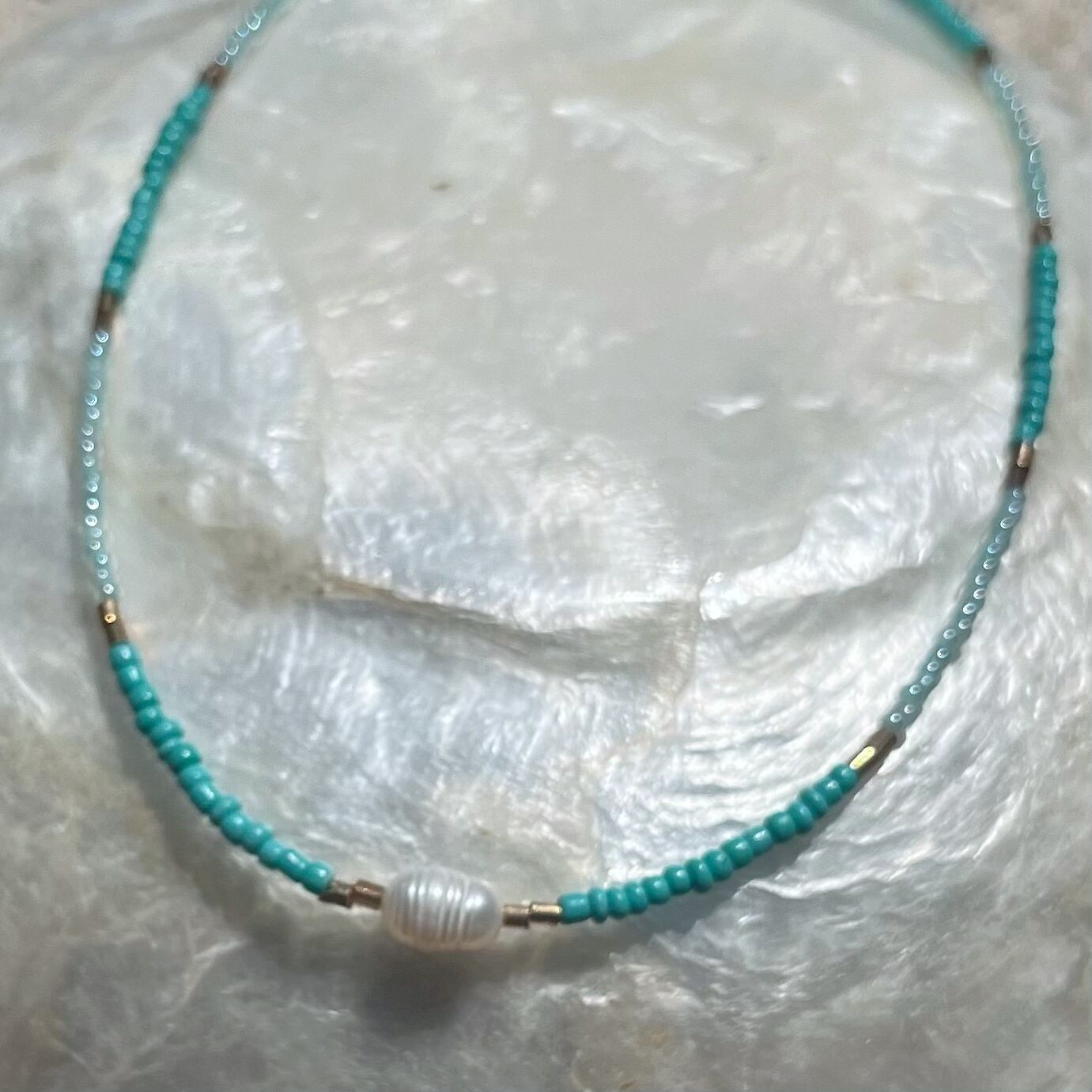 淡水パールネックレス☆ターコイズブルービーズ