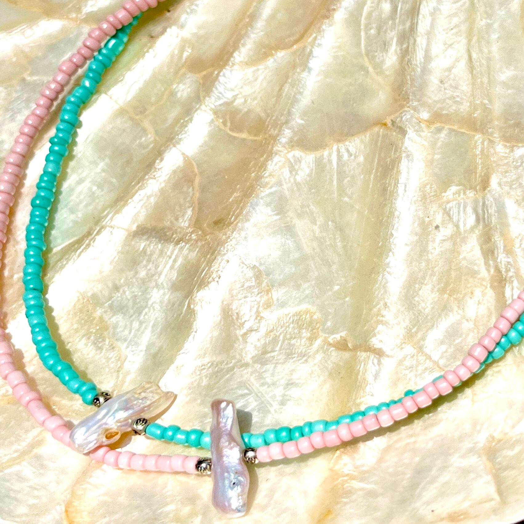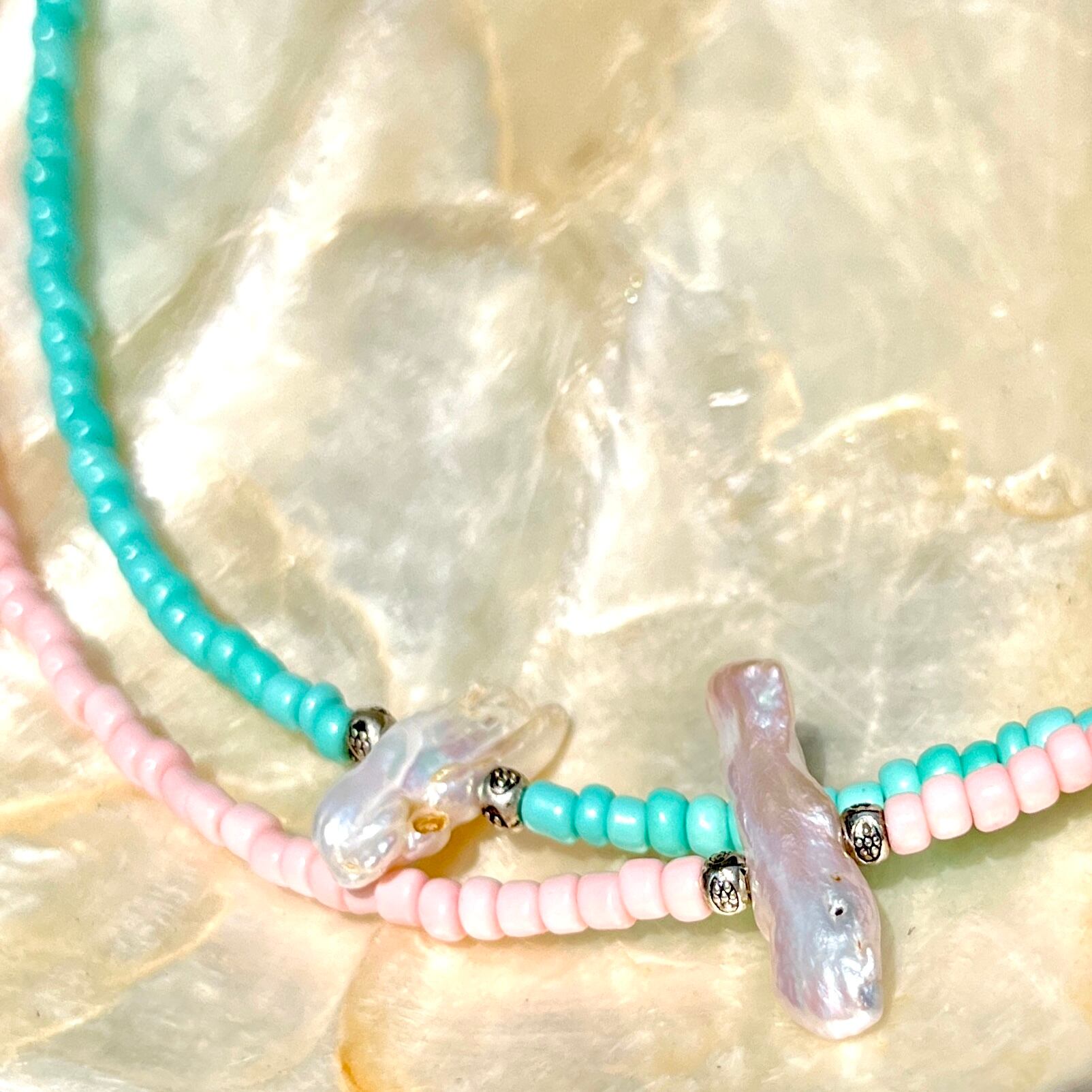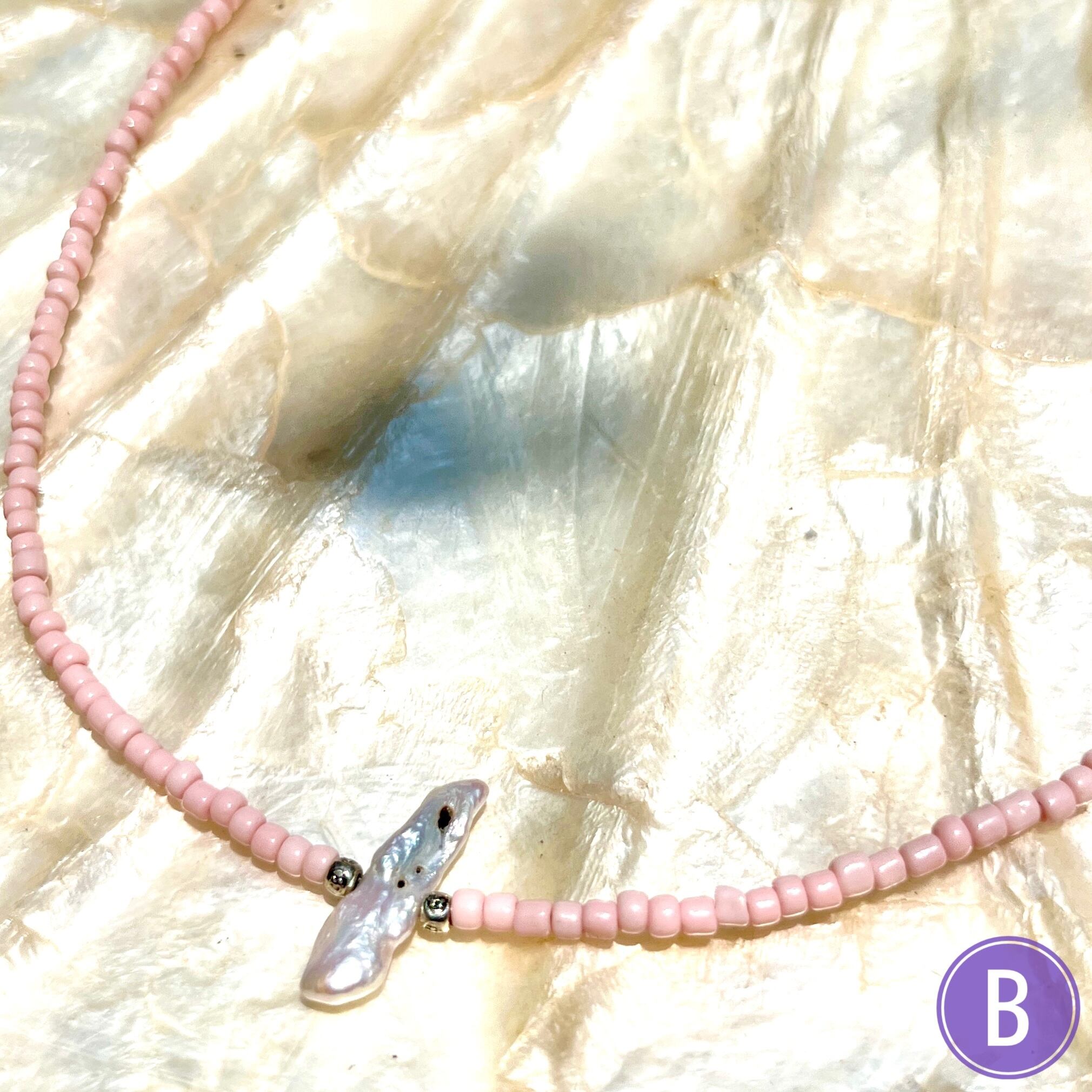 自然が作り出すユニークな形の淡水パールがワンポイントのビーズネックレス!