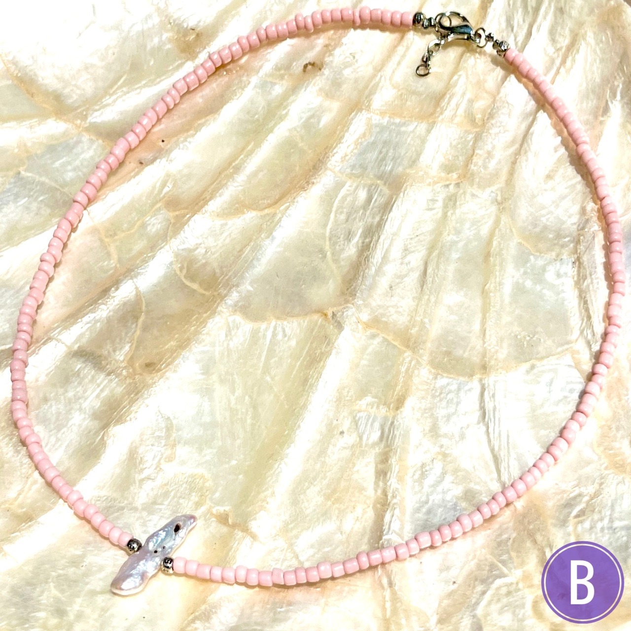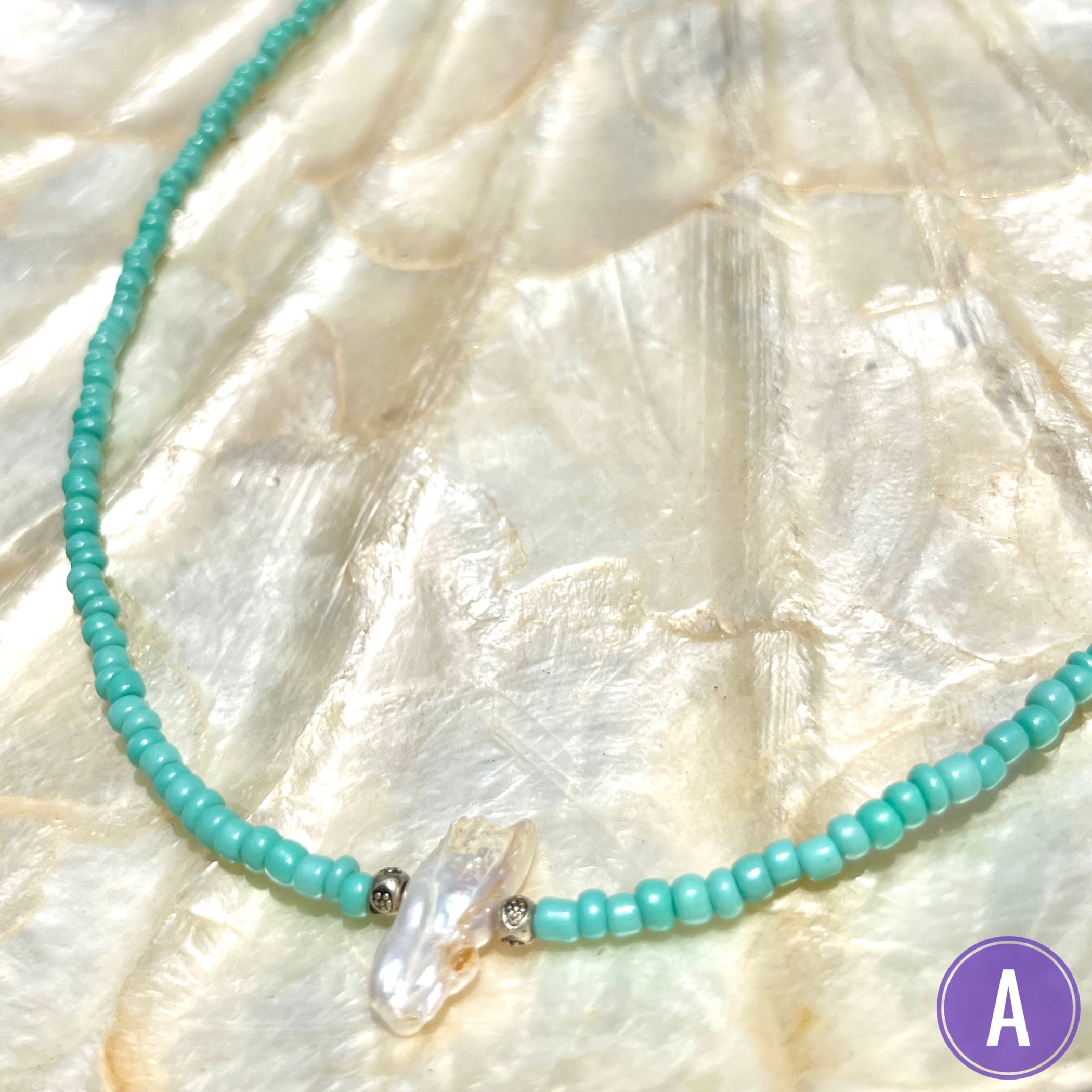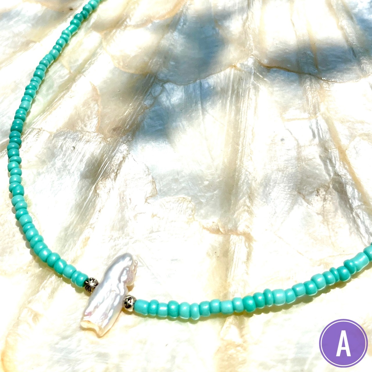自然が作り出すユニークな形の淡水パールがワンポイントのビーズネックレス!