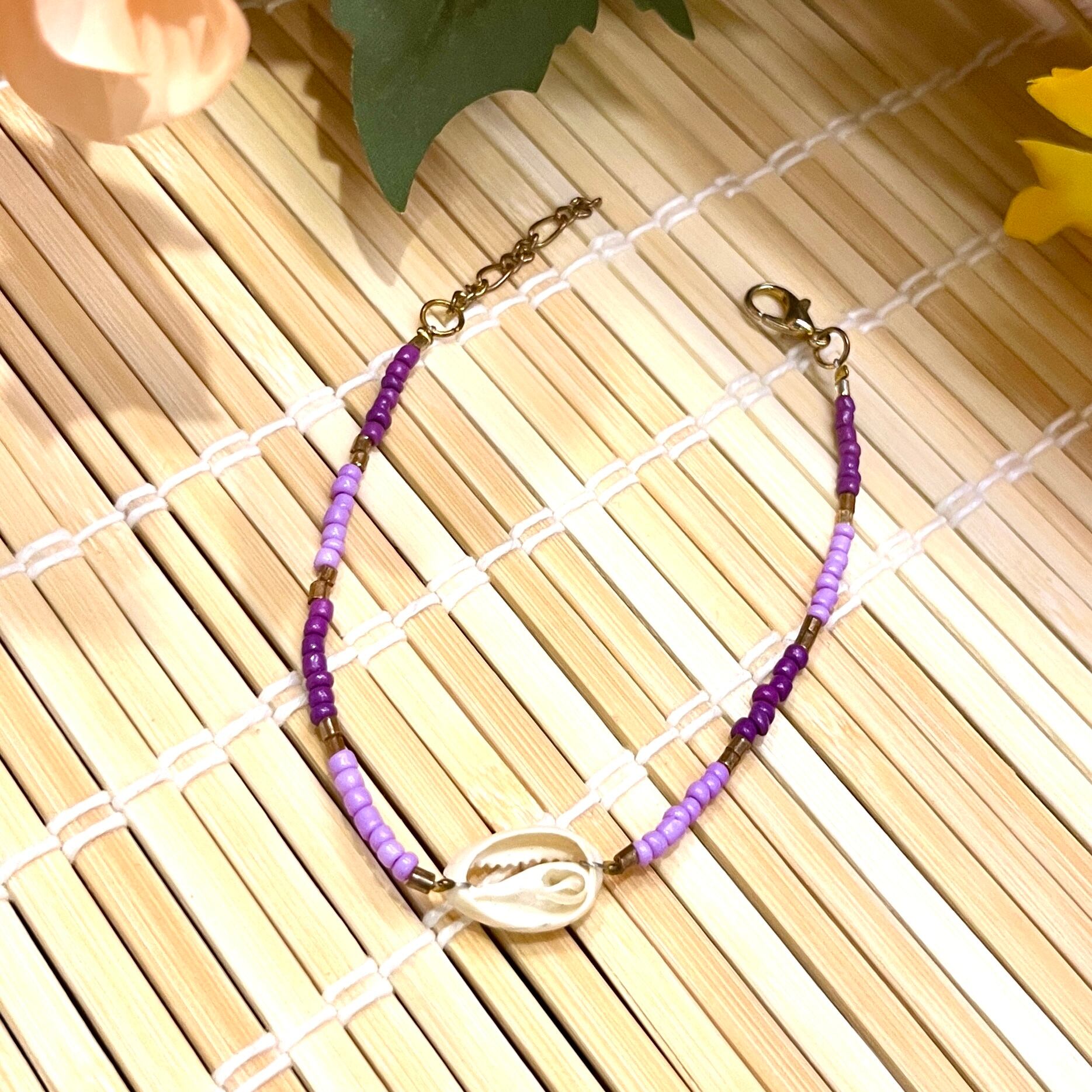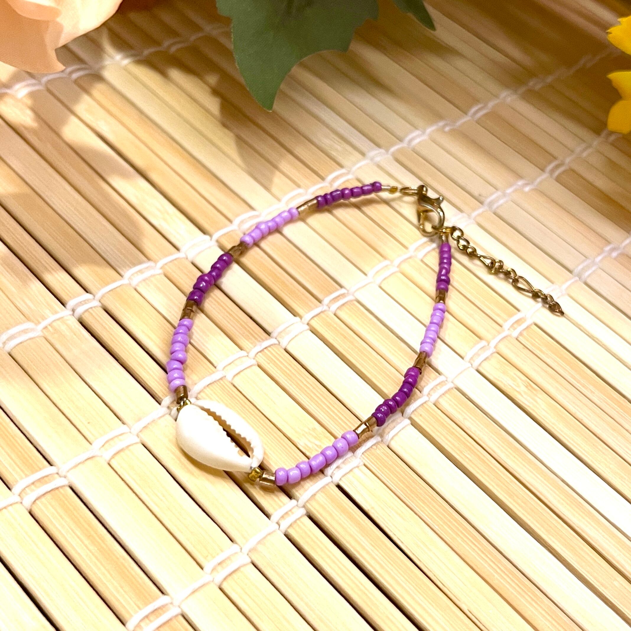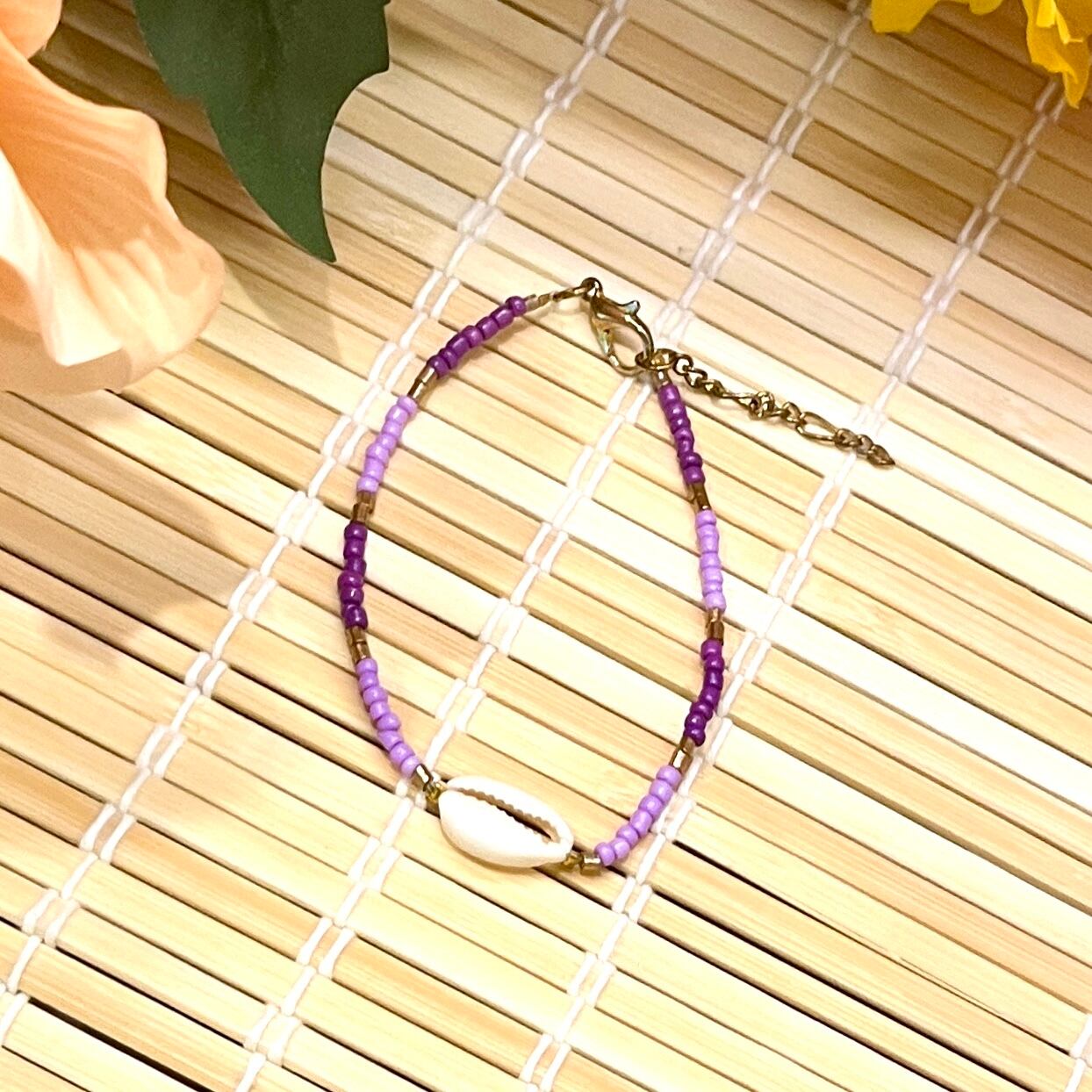 シェルブレスレット☆Purple×Purpleビーズ