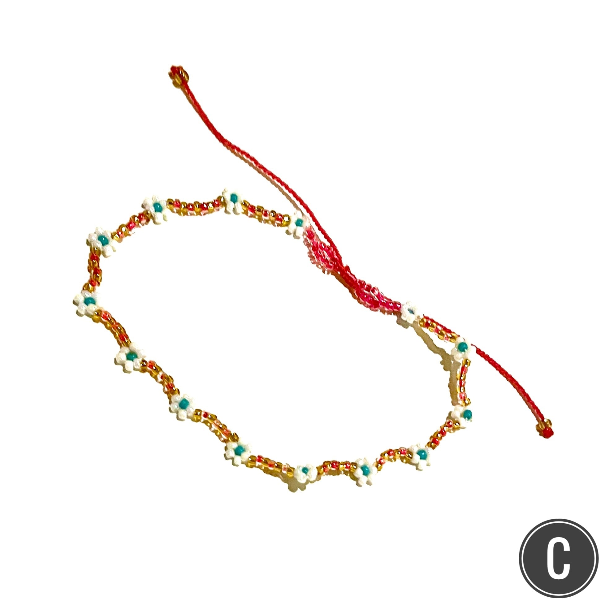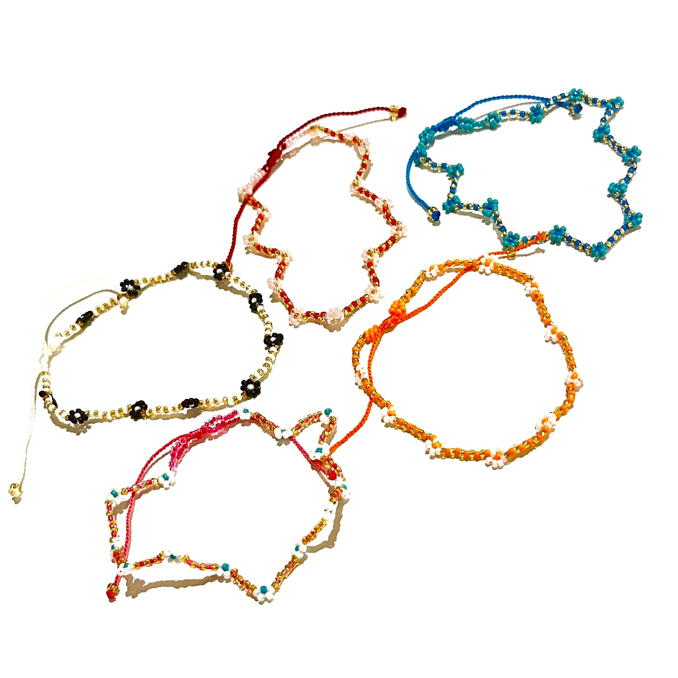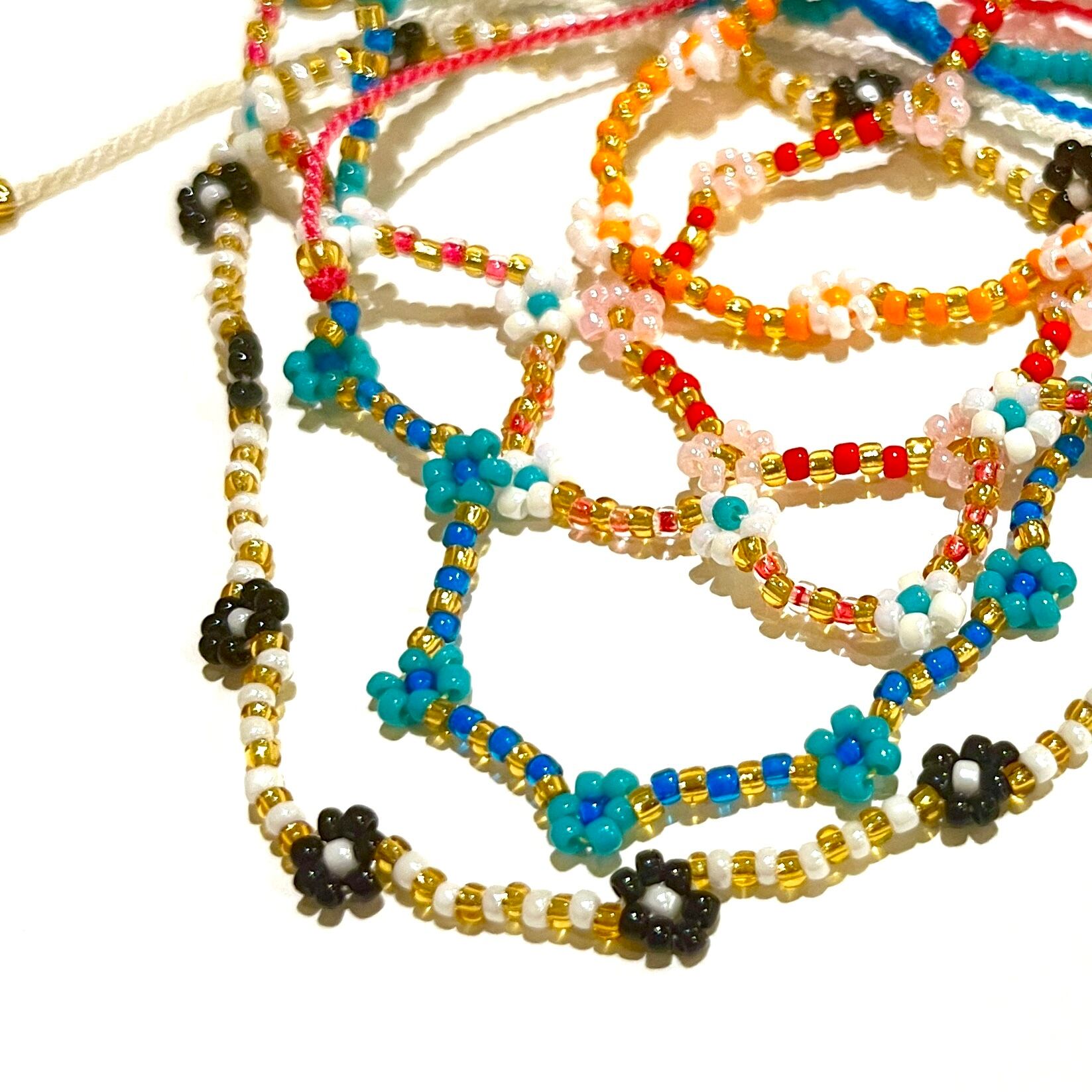 小さなお花と色鮮やかなビーズの組み合わせがキュートなアンクレット✿