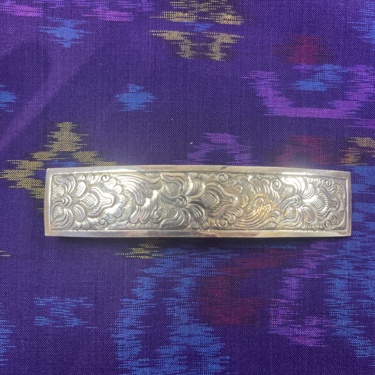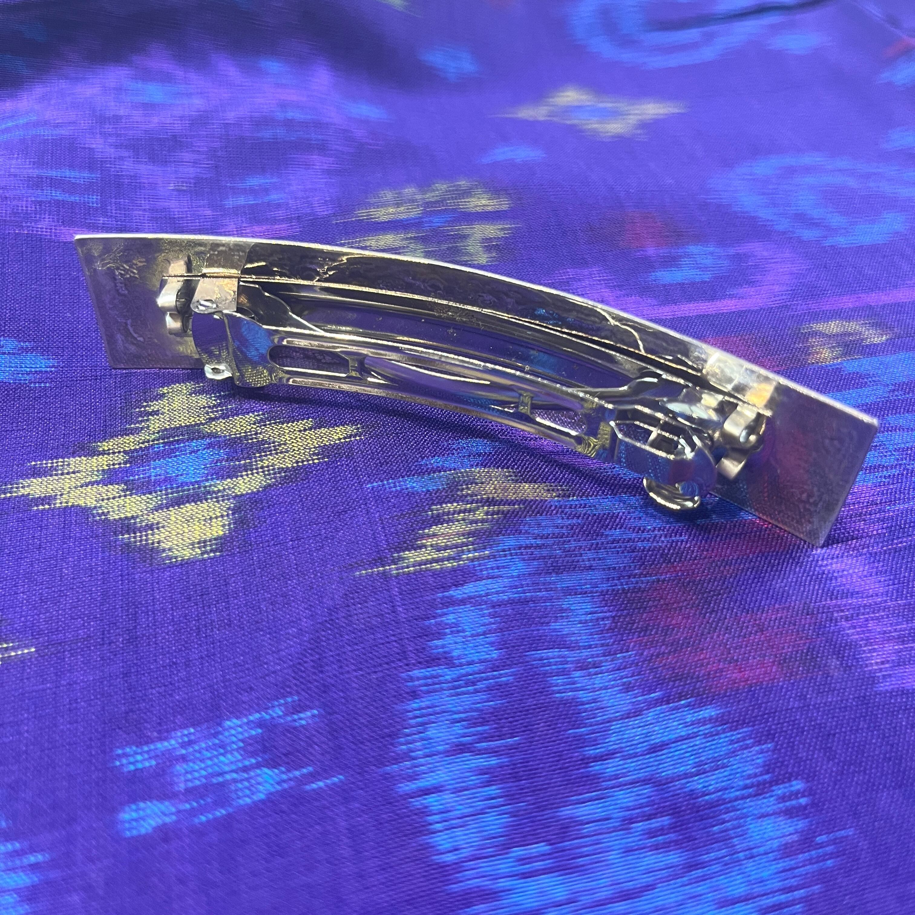 花柄模様のシルバーバレッタ