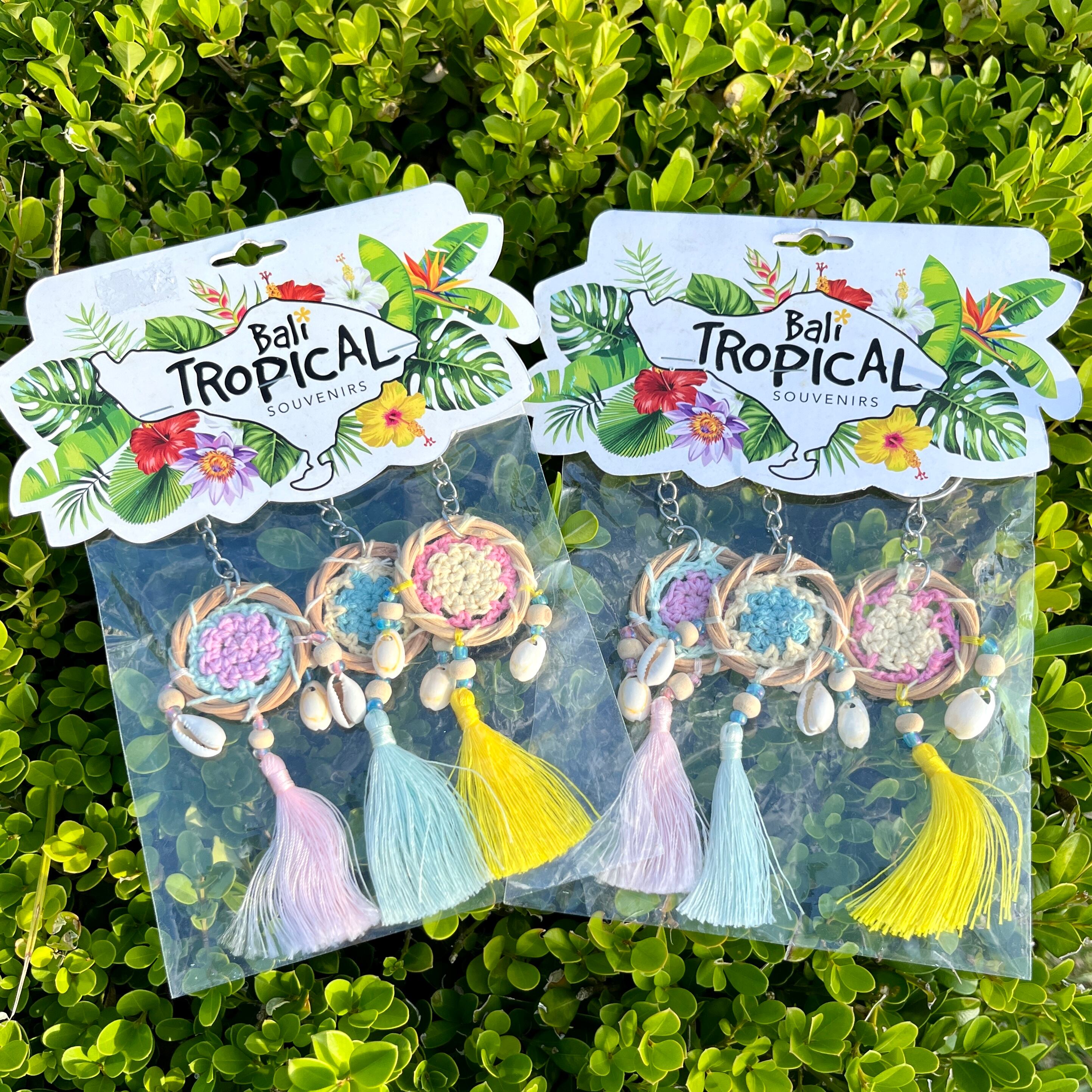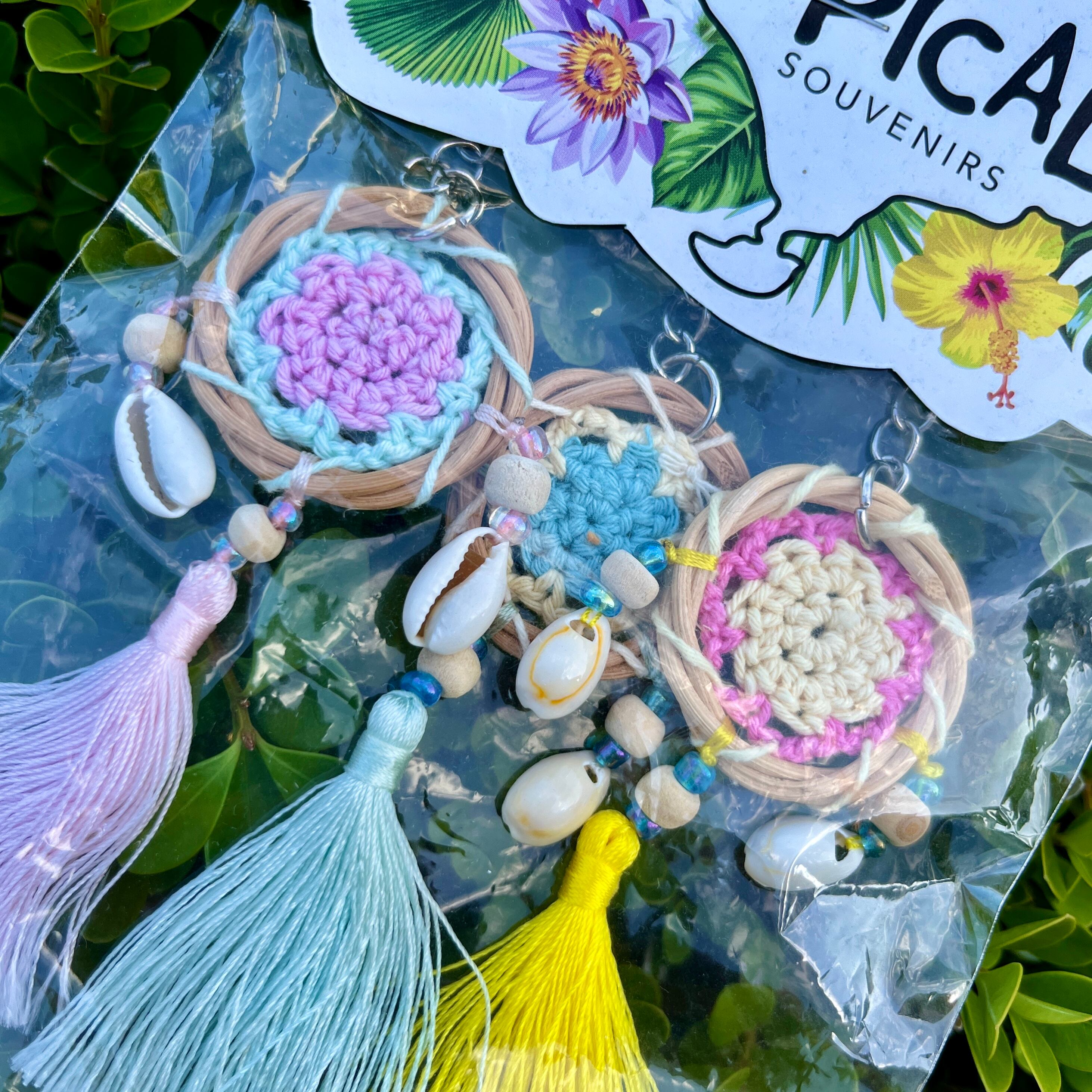 魔除け効果のあるドリームキャッチャーがかわいらしいパステルカラーで編み込まれたキーホルダーの3個セットです◎