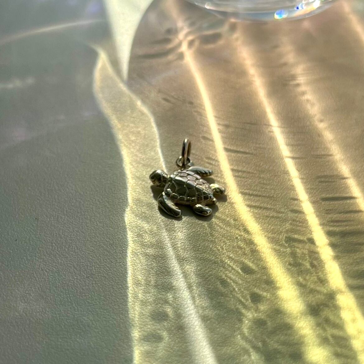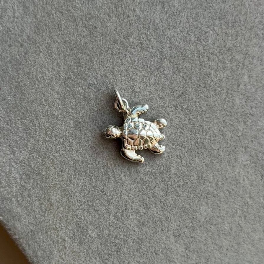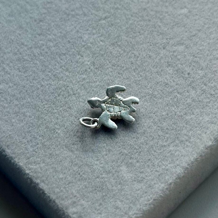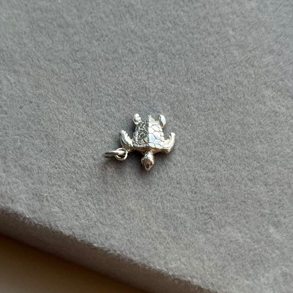 甲羅の模様や裏面も精巧に彫られたシルバーペンダント