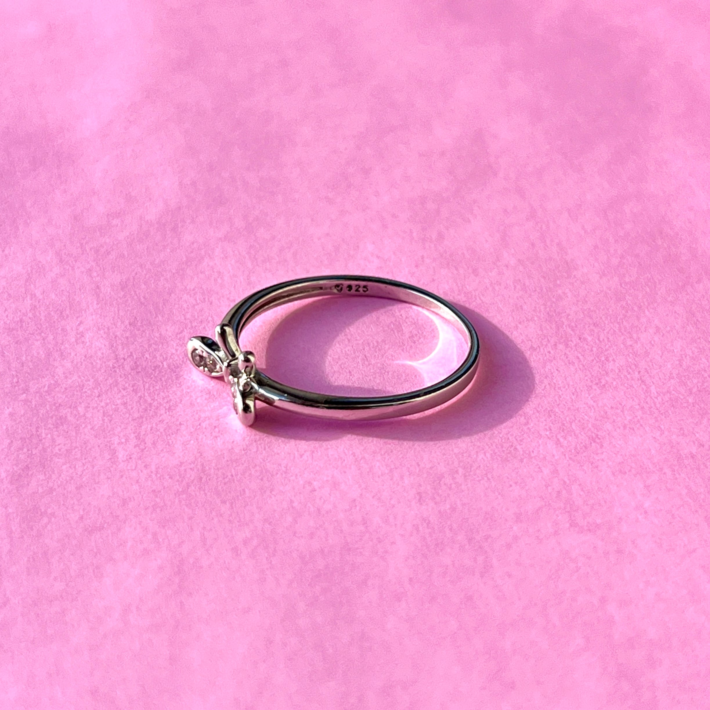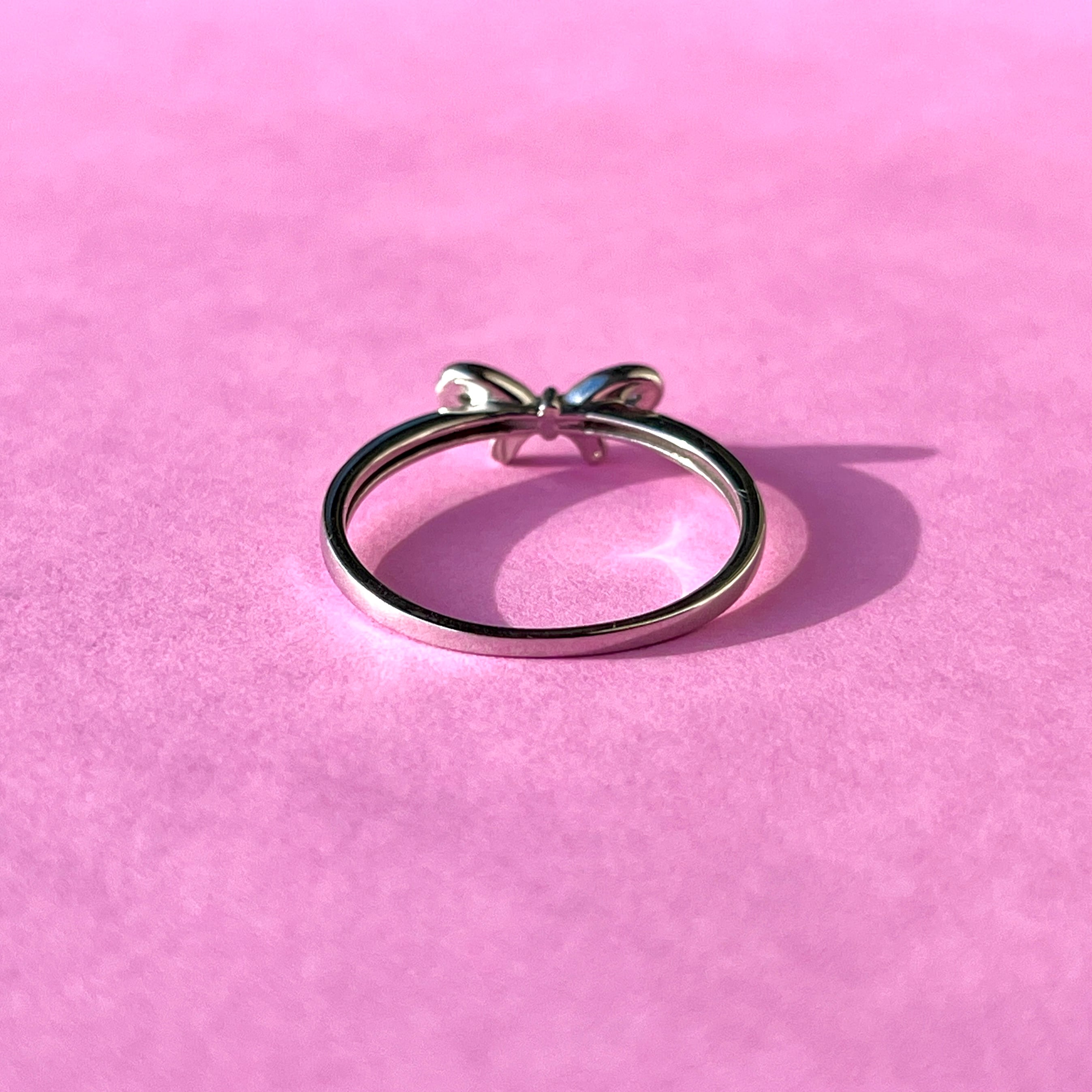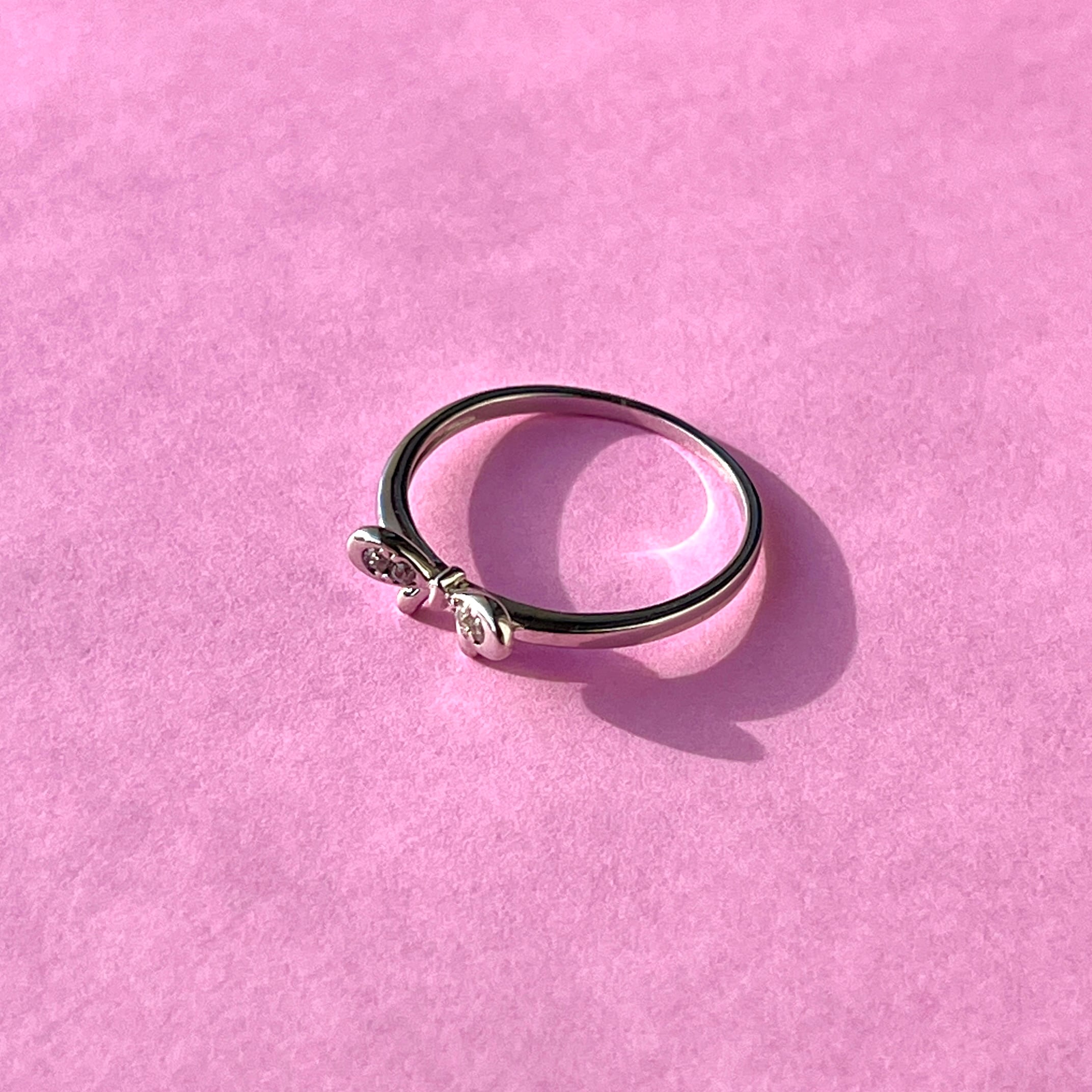 小さなリボンにきらきら輝くジルコニアがデザインされた上品なシルバーリング