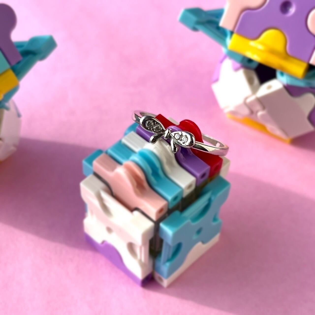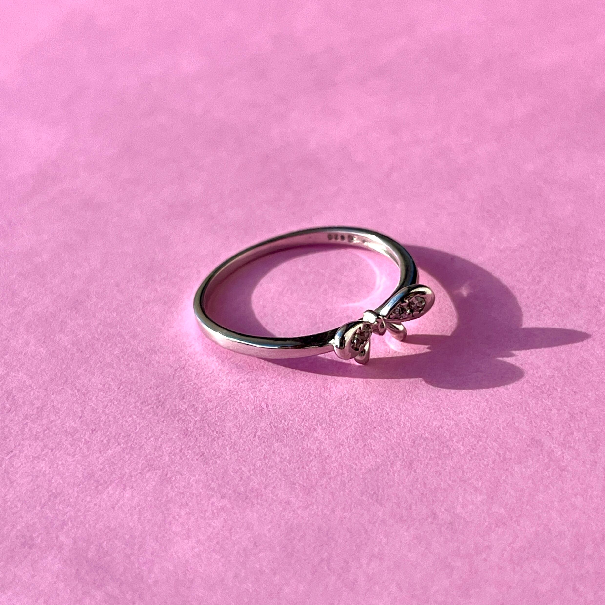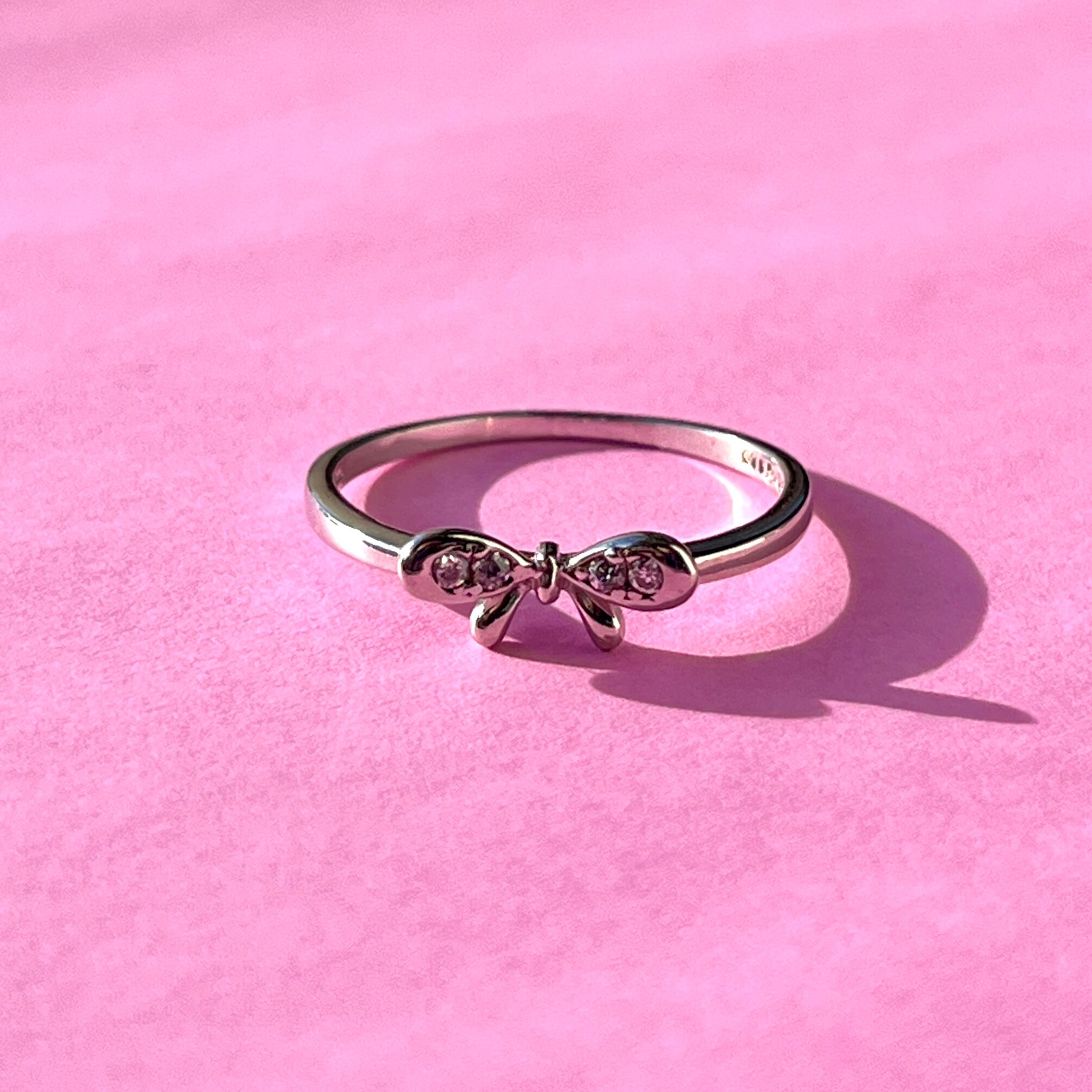 小さなリボンにきらきら輝くジルコニアがデザインされた上品なシルバーリング