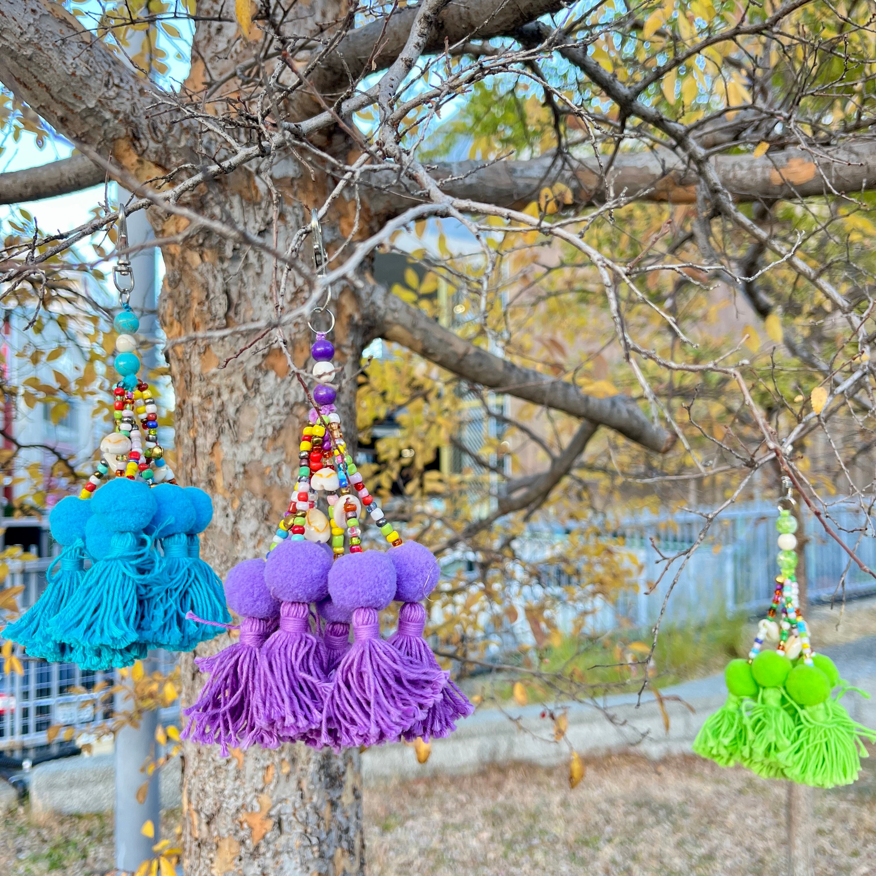 ボンボン&ビーズ ボリューミーキーホルダー(選べる3カラー)