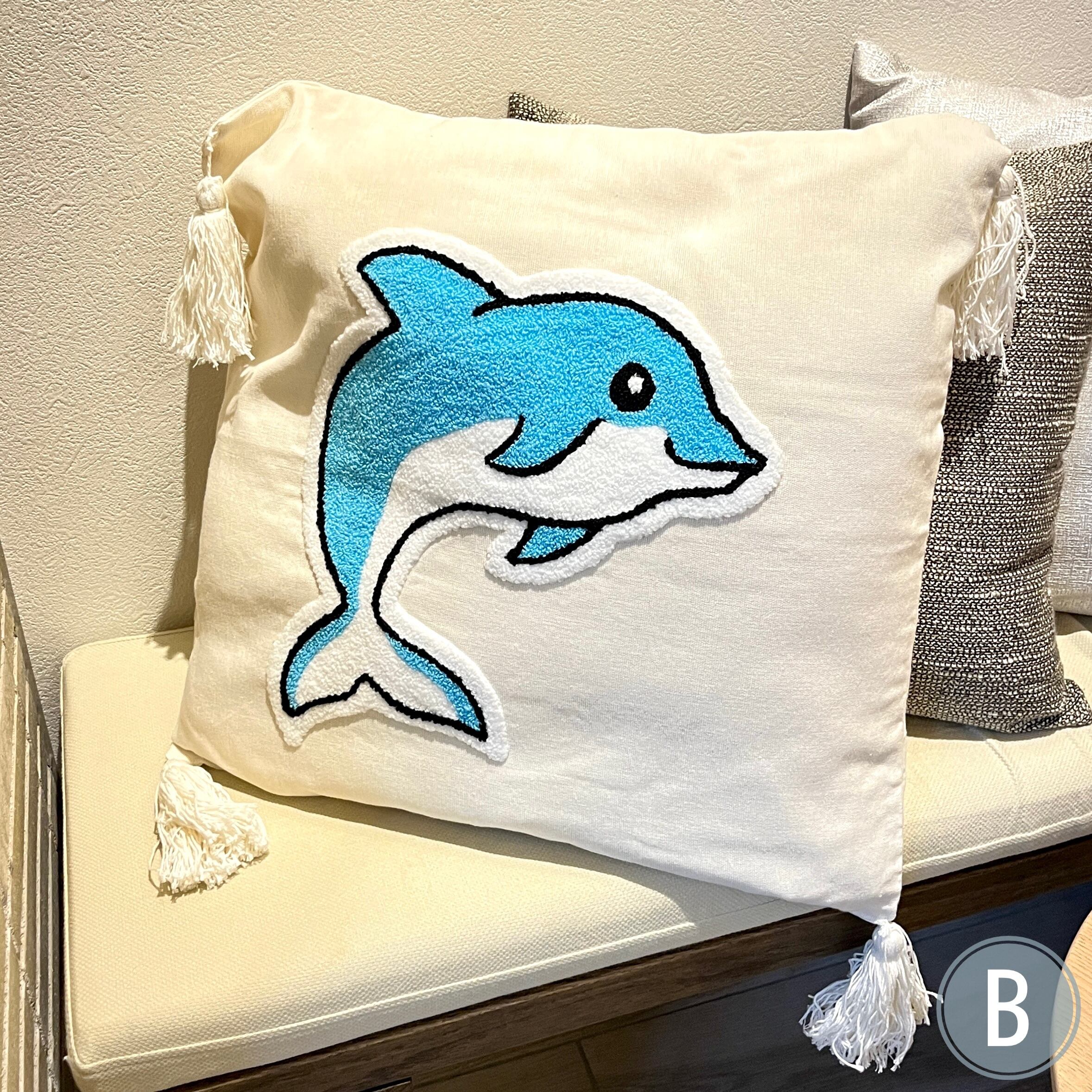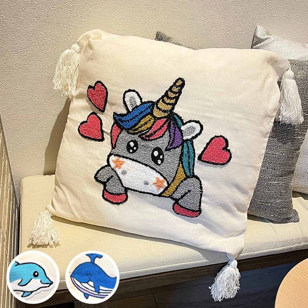 タッセル付きタフティングクッションカバー(柄違い3種)