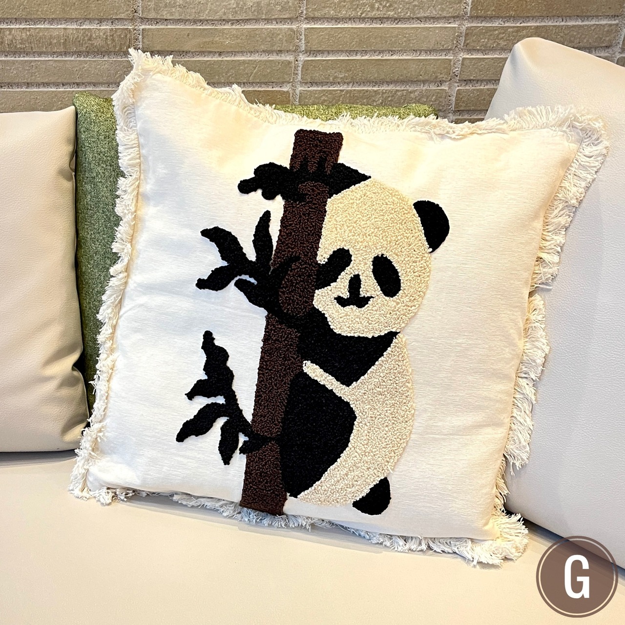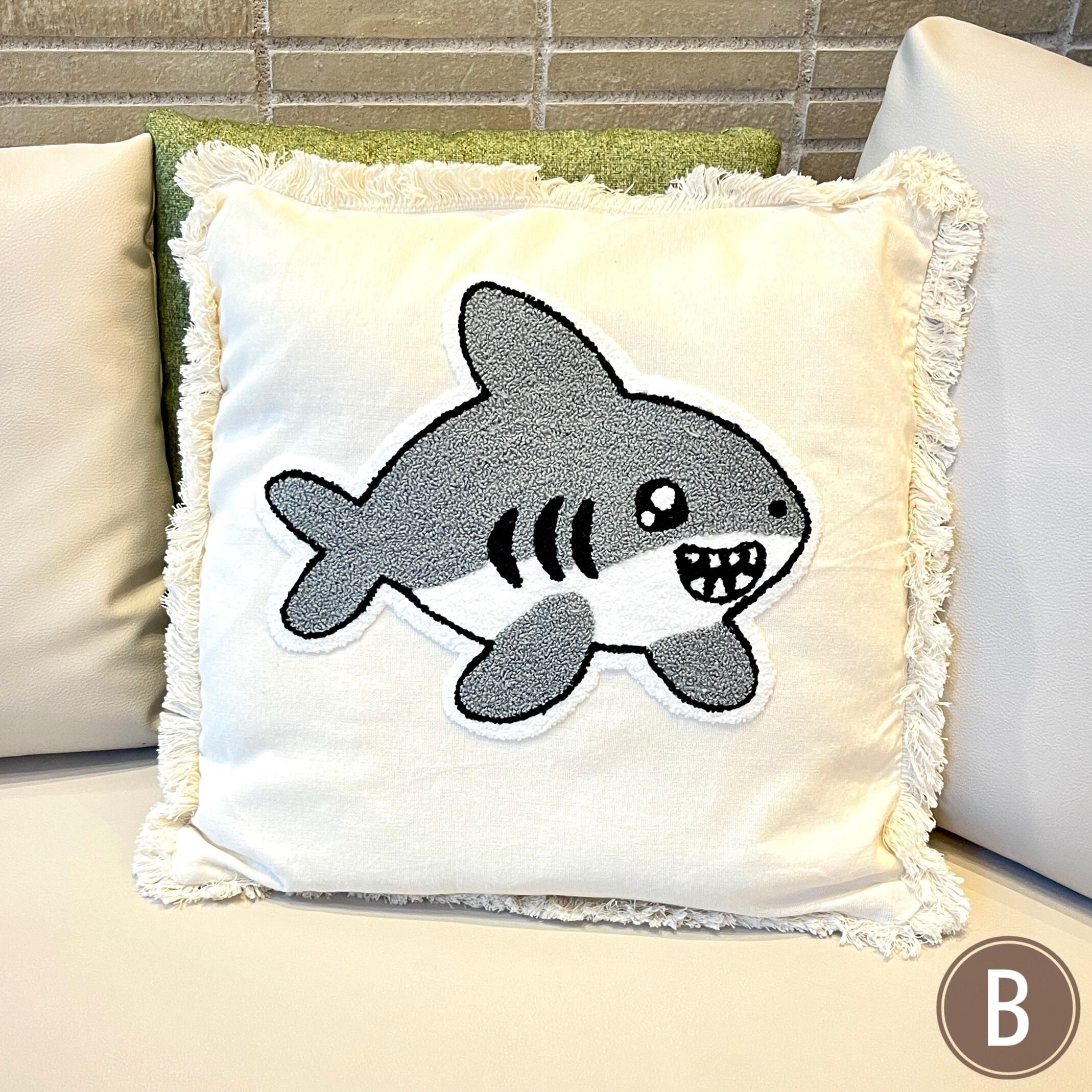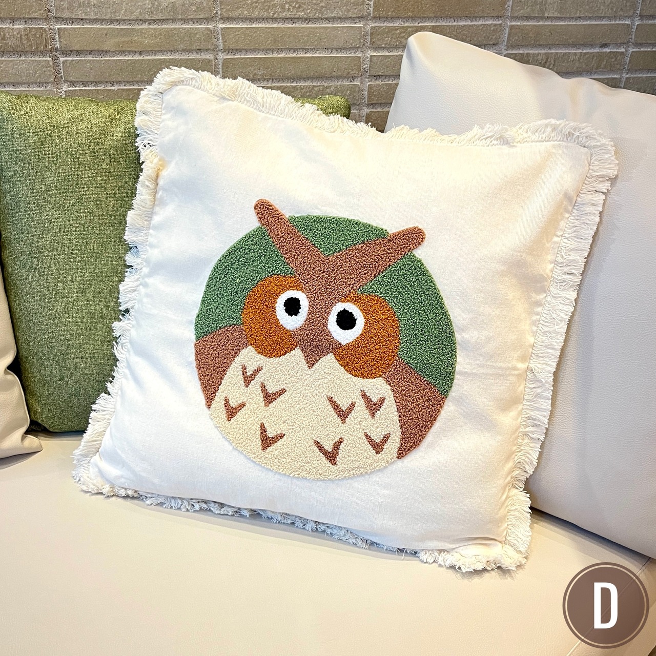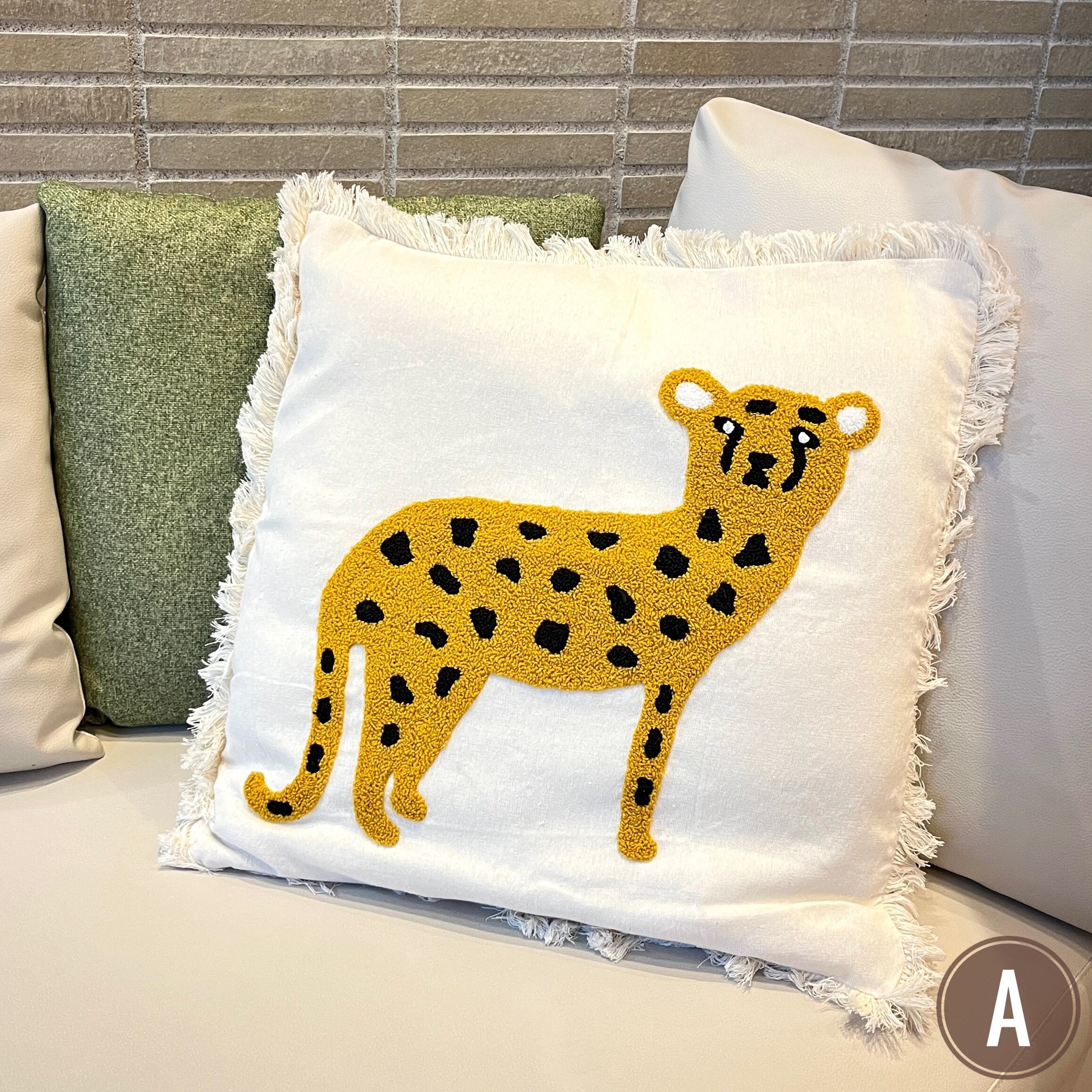 フリンジ付きタフティングクッションカバー(柄違い7種)