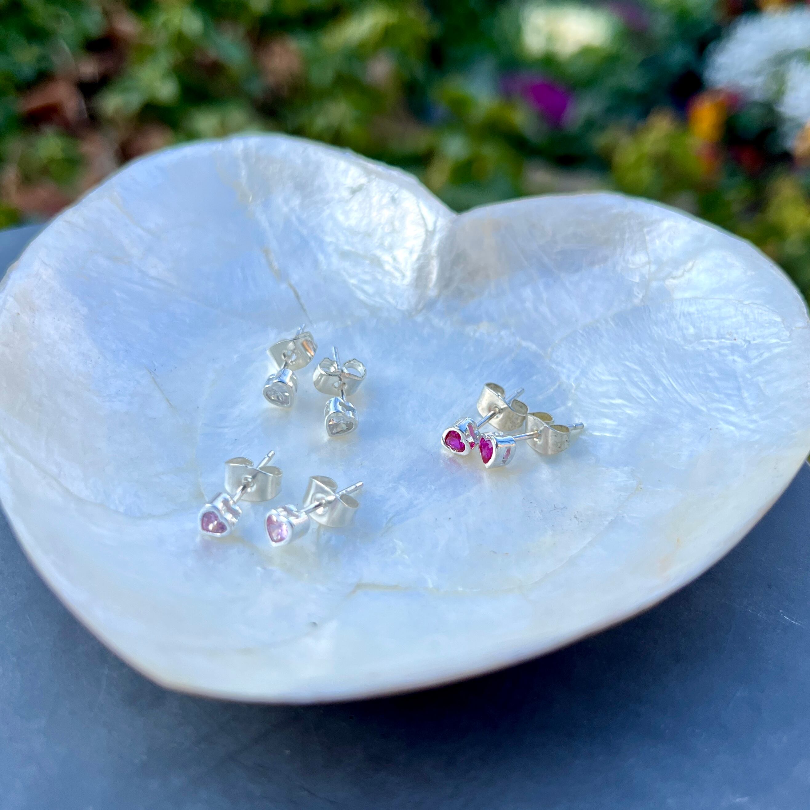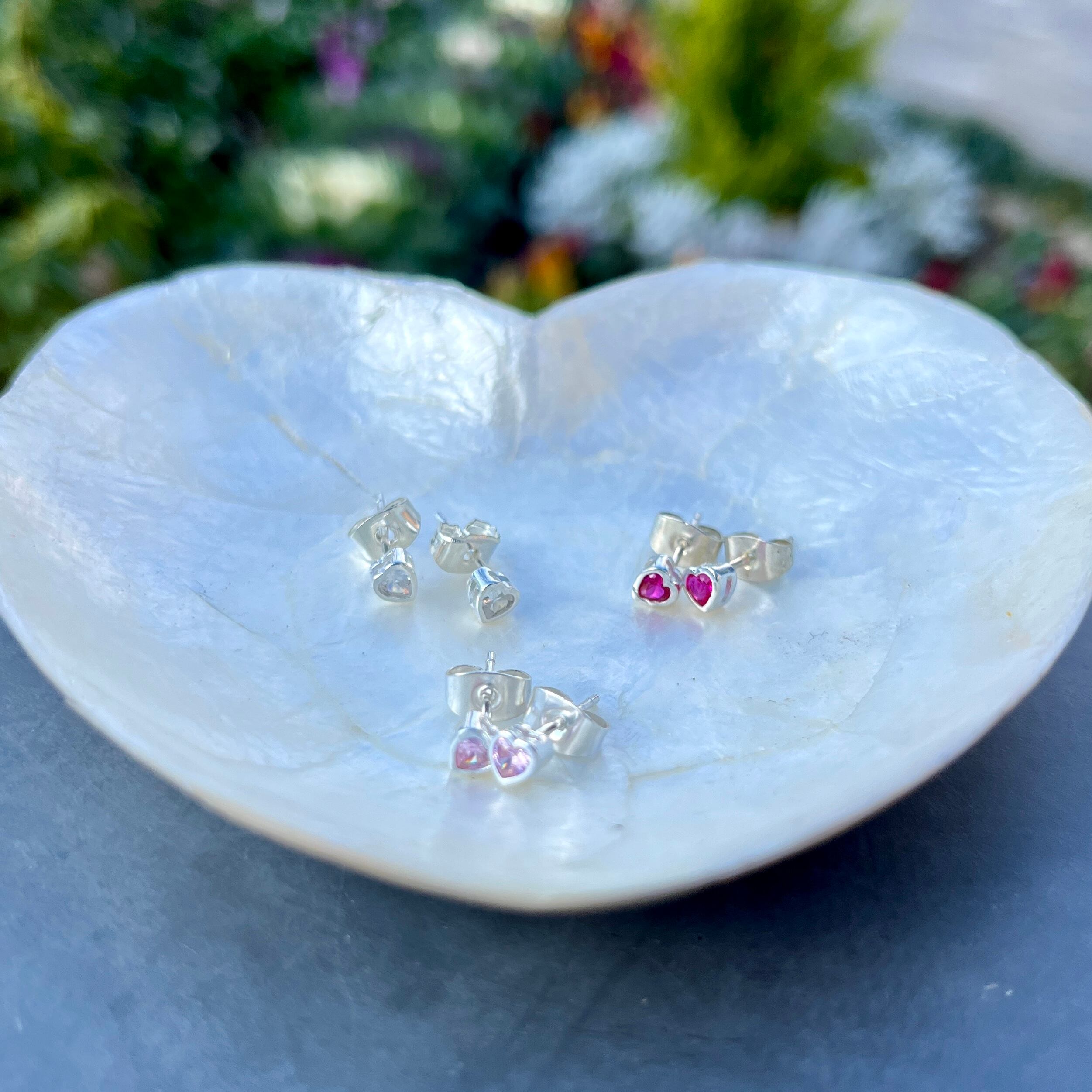 Silver925 ジルコニア ハートピアス(カラー3種)